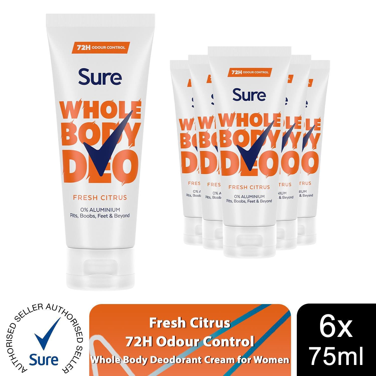 Sure Fresh Citrus & Wild Rose Whole Body Deodorant Cream 75ml, 6 Pack