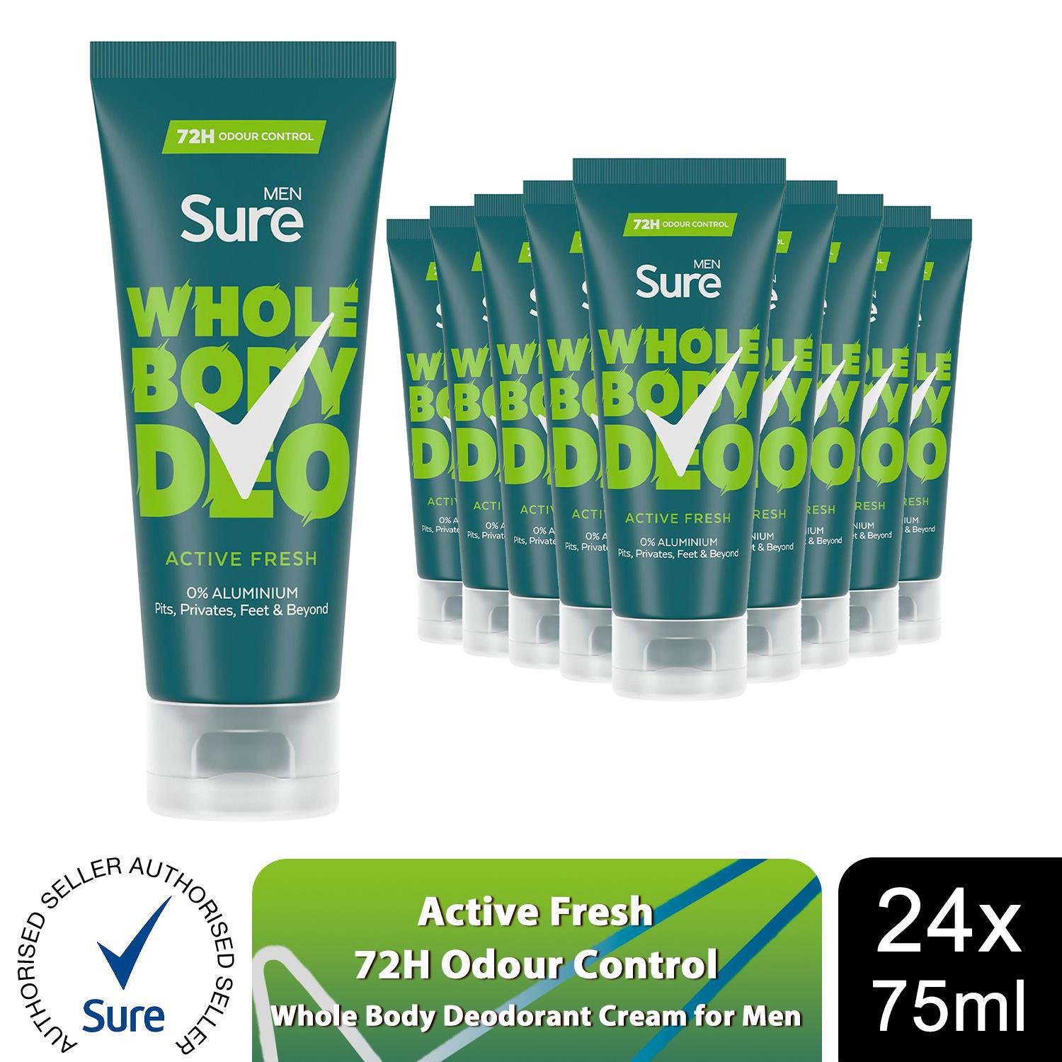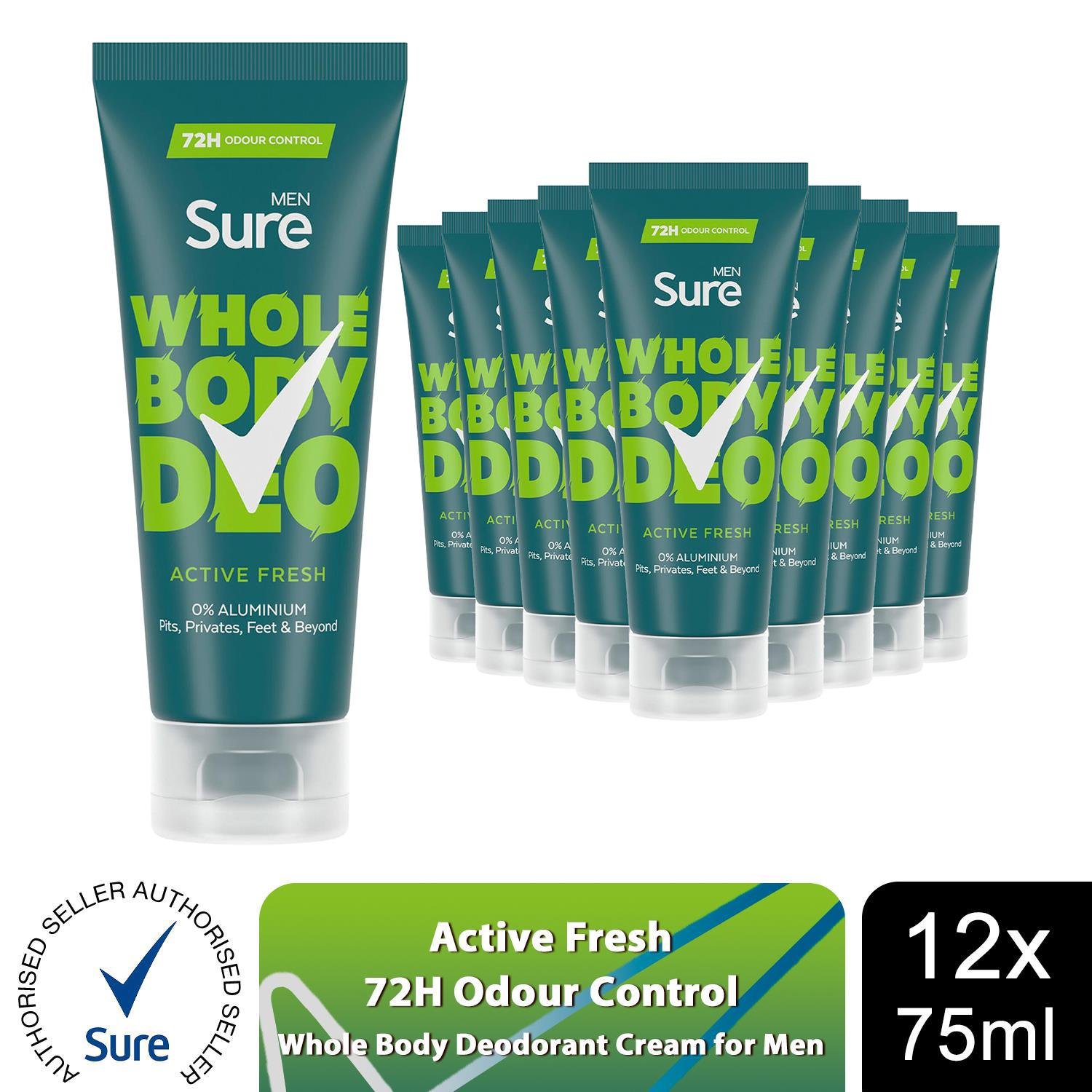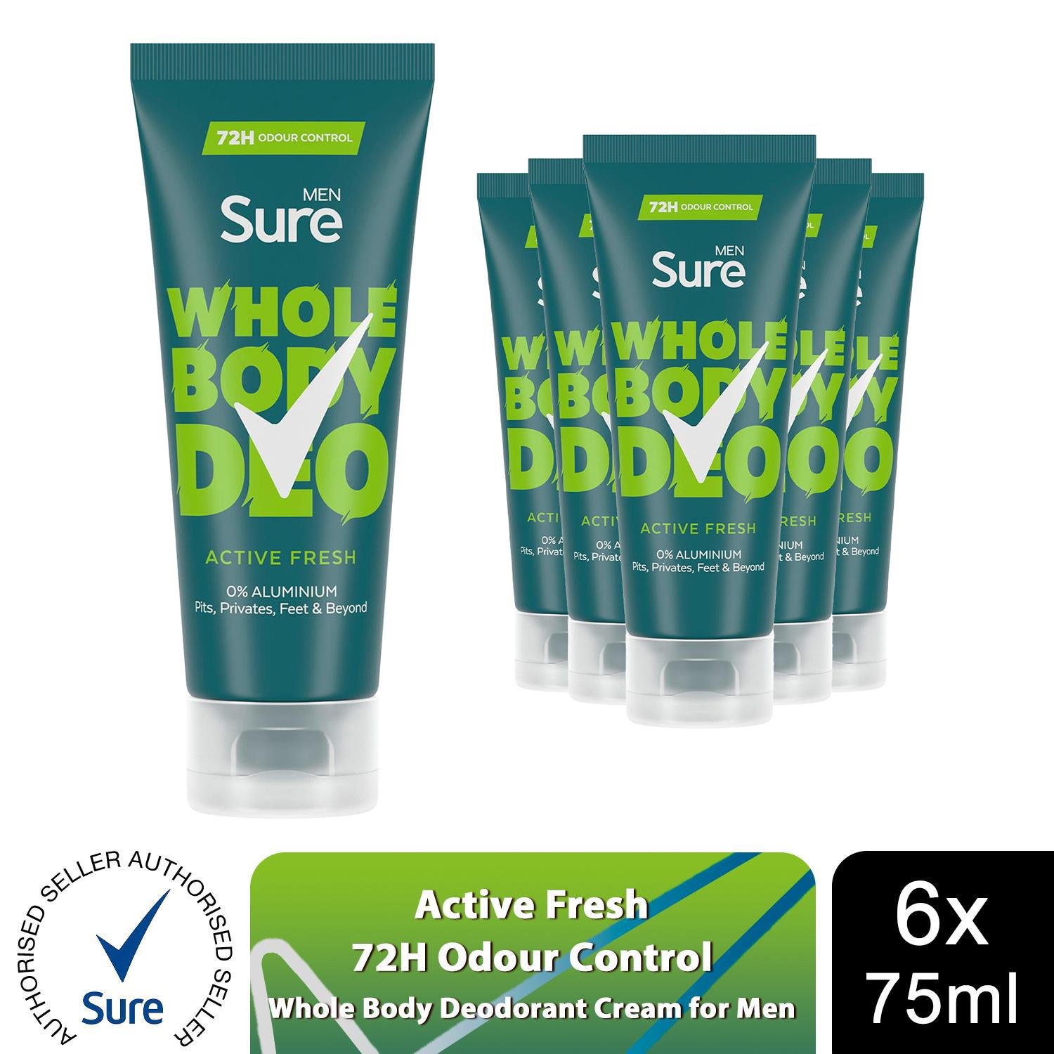 Sure Men Whole Body Deodorant Cream Active Fresh w/ 72H Odour Control 75ml, 6 Pk