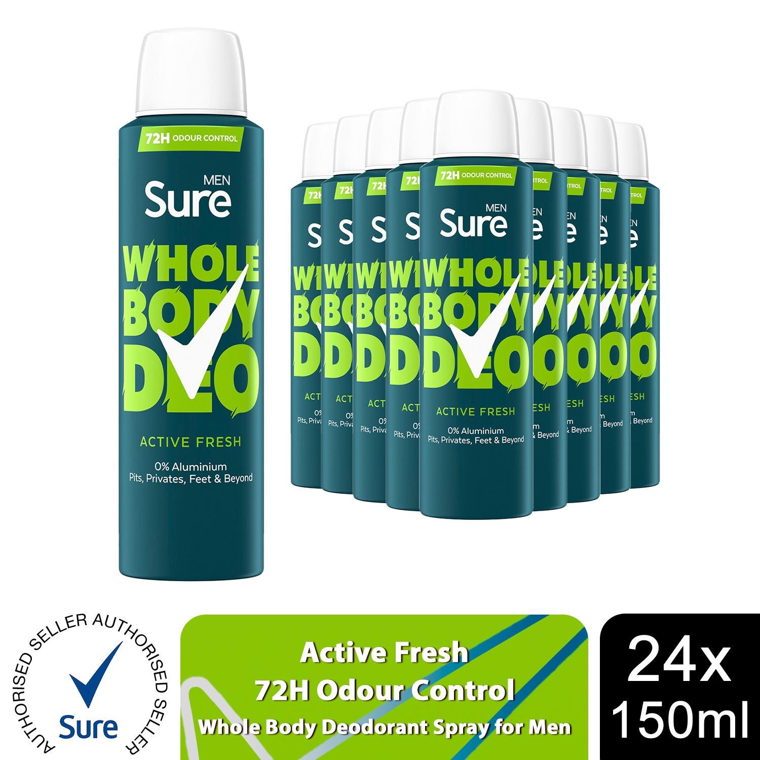 Sure Men Whole Body Deodorant Spray Active Fresh w/ 72H Odour Control 150ml,24pk
