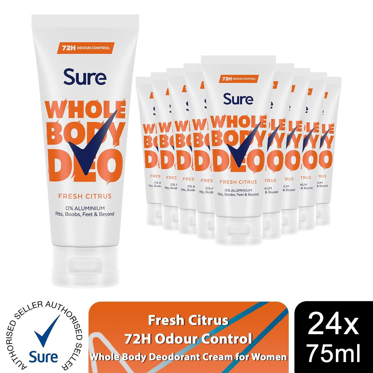 Sure Fresh Citrus Whole Body Deodorant Cream Aluminium Free 75ml, 24 Pack