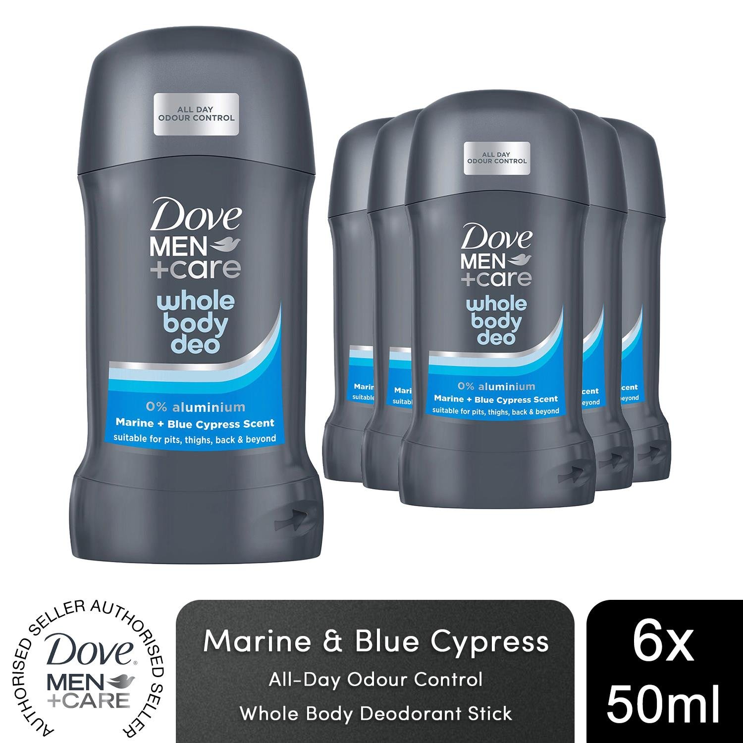 Dove Men+Care Whole Body Deodorant Stick Bamboo & Aloe or Marine Blue 50ml, 6pk
