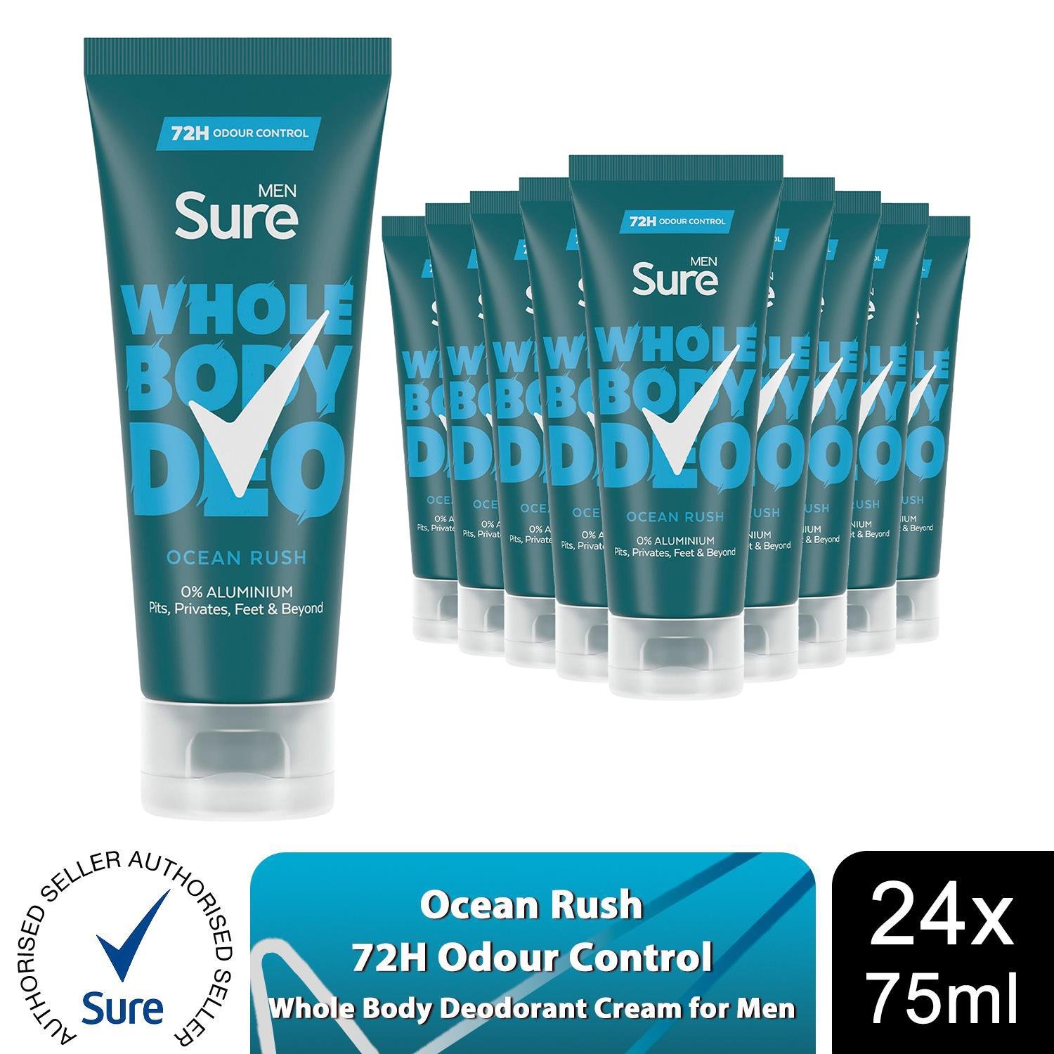 Sure Men Whole Body Deodorant Cream Ocean Rush w/ 72H Odour Control 75ml, 12 Pk