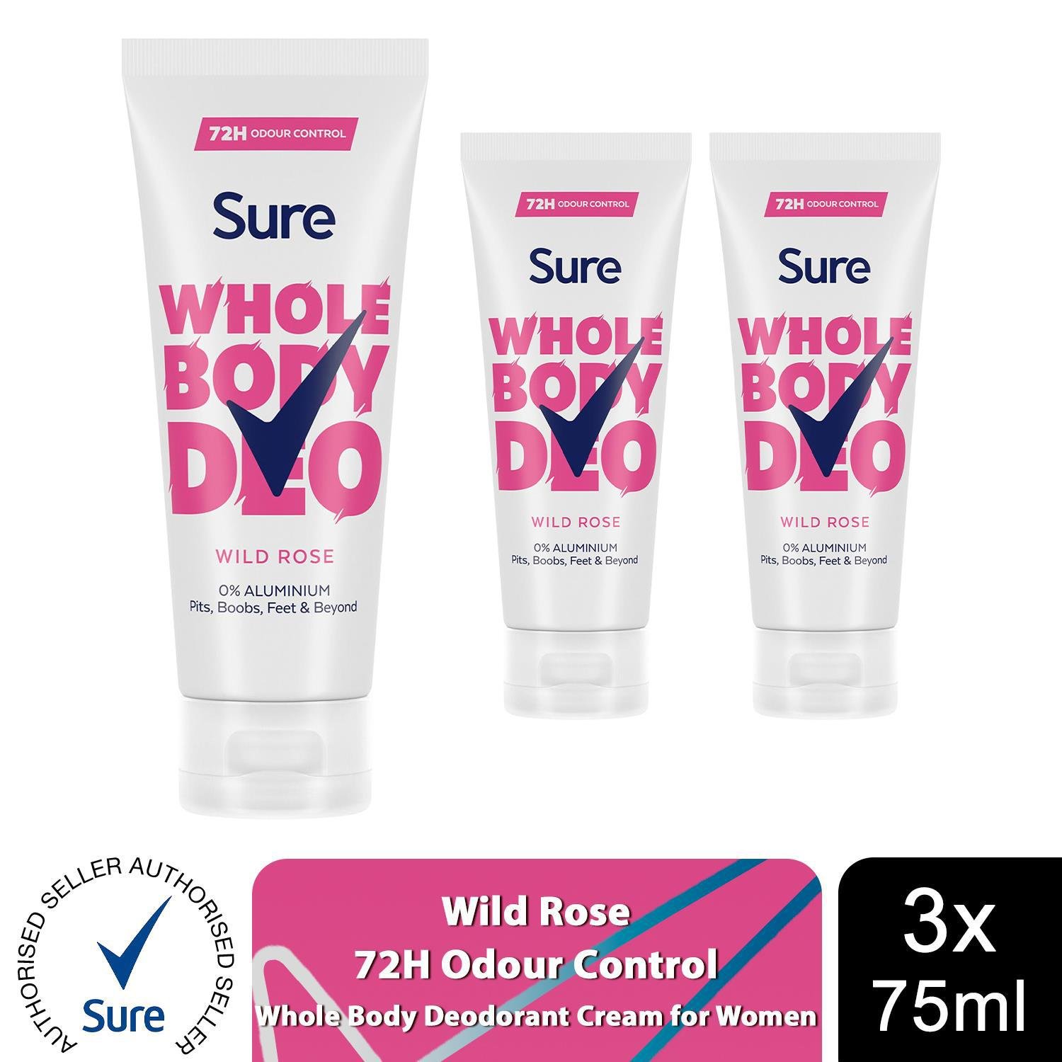Sure Wild Rose Whole Body Deodorant Cream 75ml | 72H Odour Control for Women