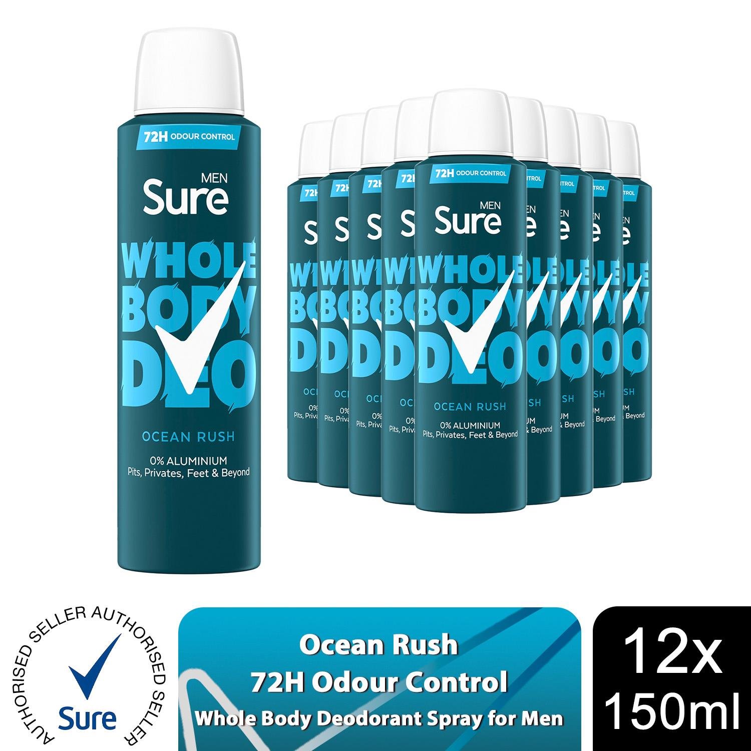 Sure Men Whole Body Deodorant Spray Ocean Rush & Active Fresh 150ml, 12 Pack