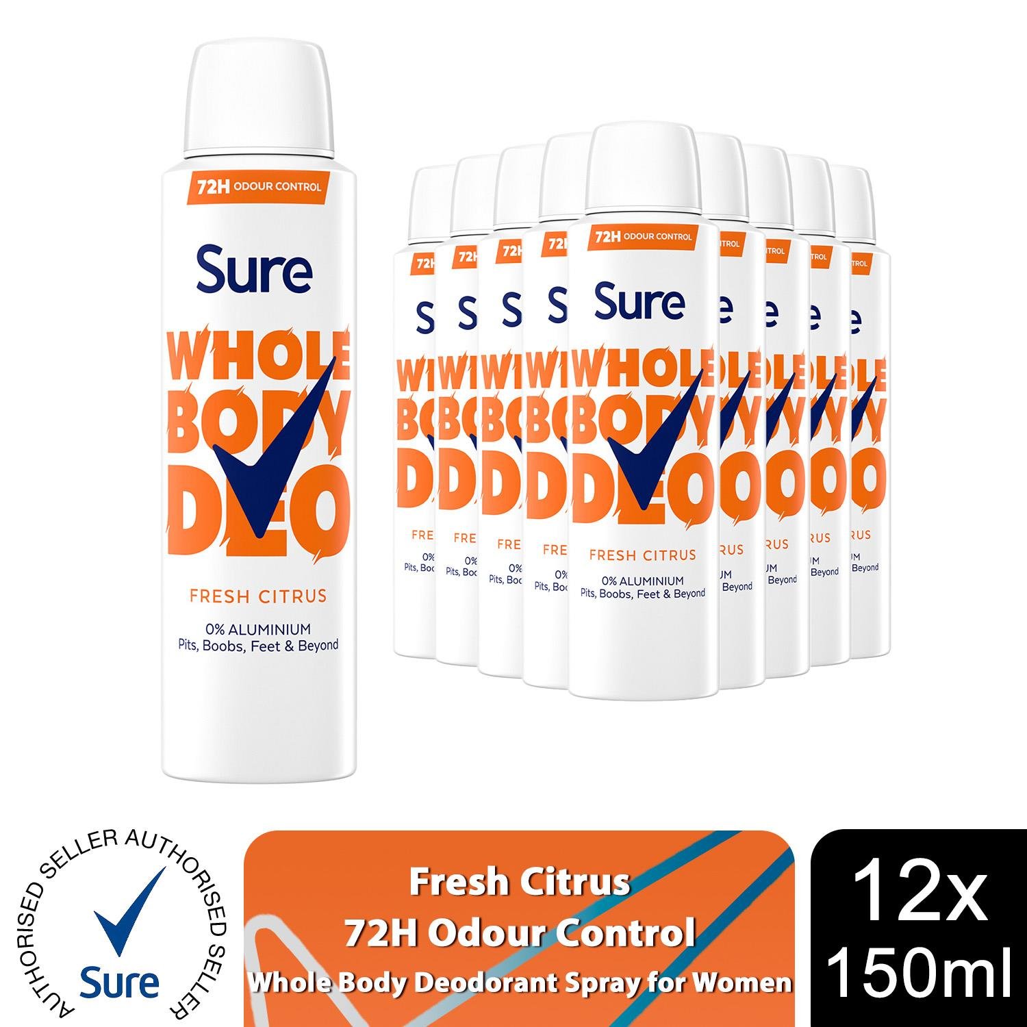 Sure Women Fresh Citrus Whole Body Deodorant Spray Aluminium Free 150ml, 12 Pack