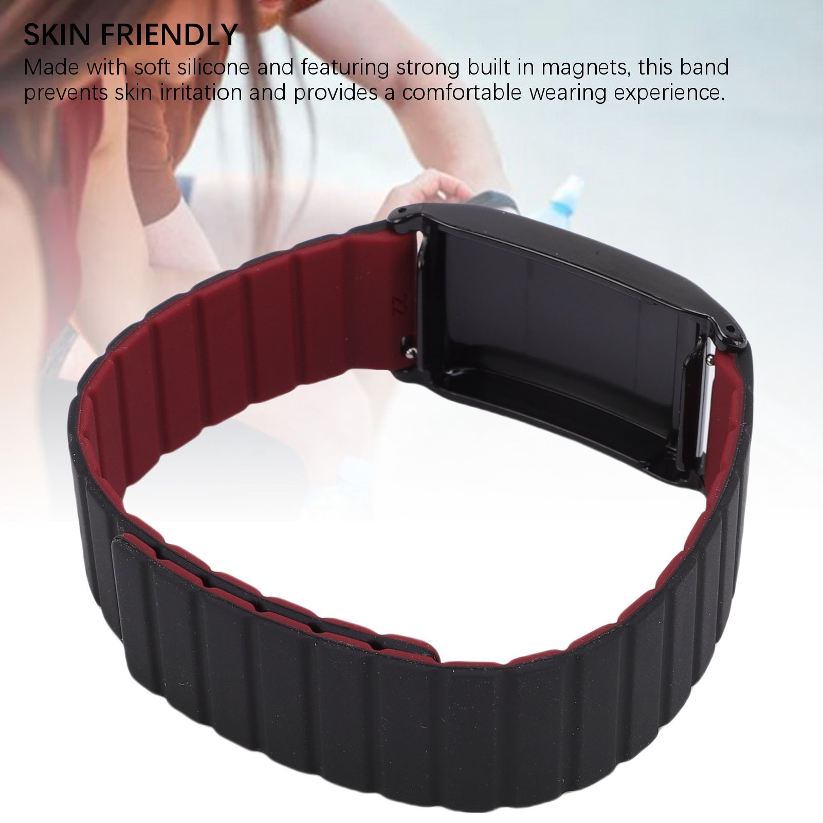 Black Wine Red Magnetic Silicone Watch Band Replacement For WHOOP 4.0 Watch OT