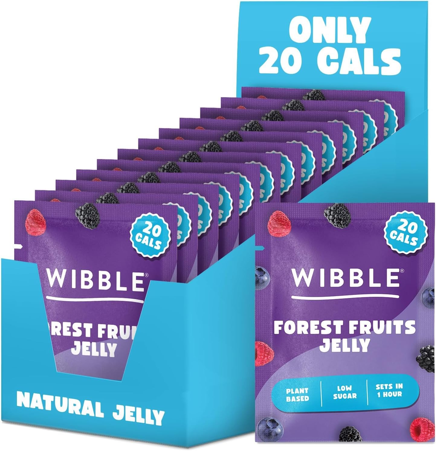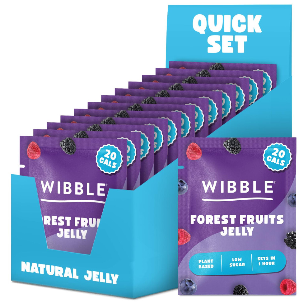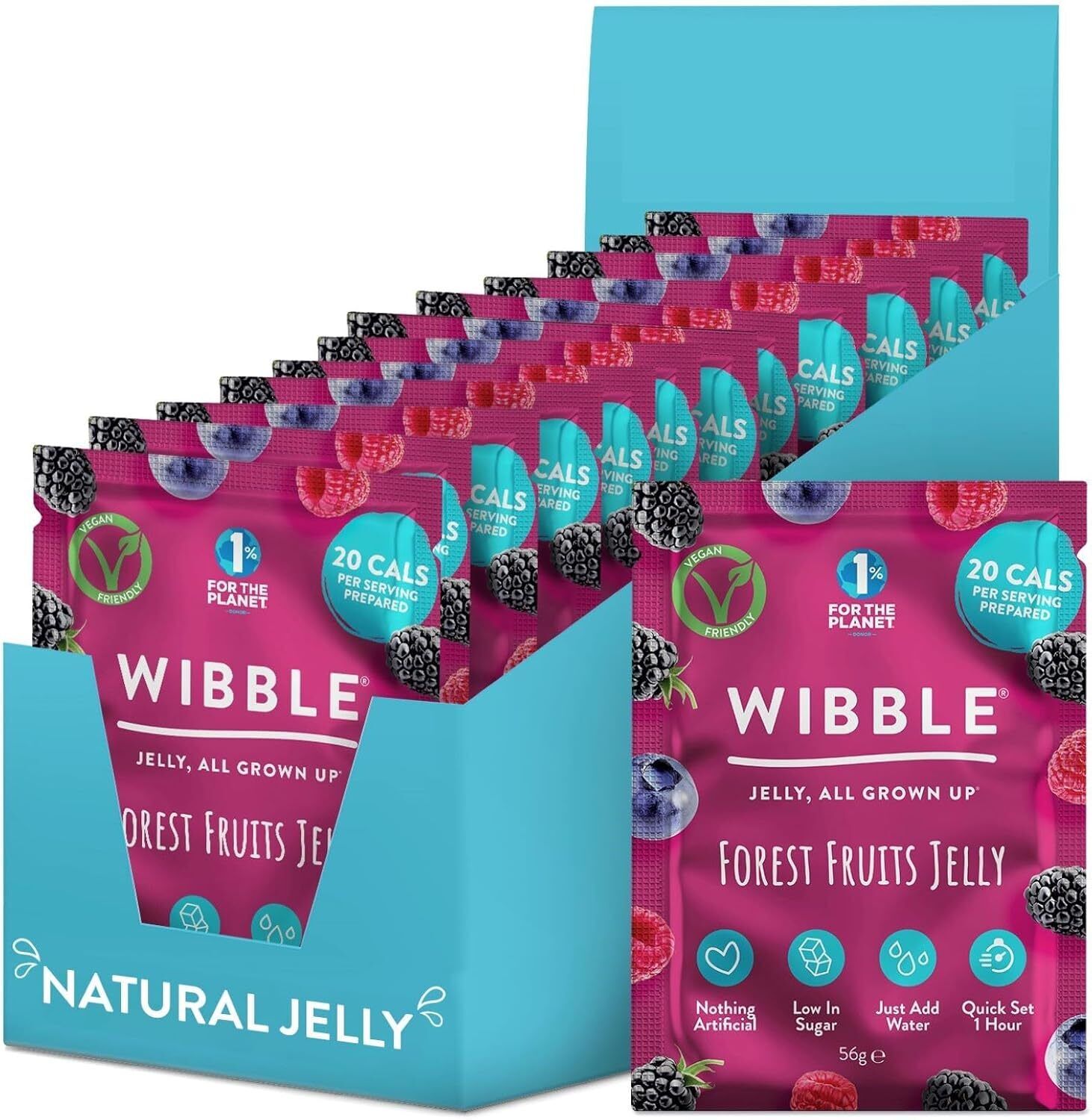 Wibble Jelly Crystals, Forest Fruits Natural Jelly Powders, Quick Set, 12 pack, Low Sugar, Plant-Based, Low Calorie Snack, Healthy Dessert, Serves 4, Vegan Jelly Crystals, Vegetarian Jello Powder