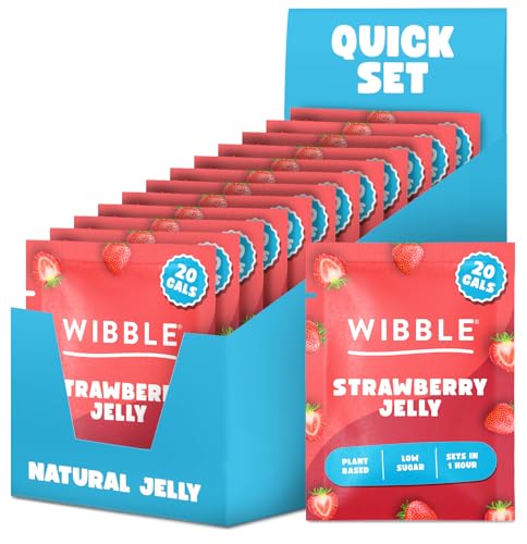 Wibble Jelly Crystals, Strawberry Natural Jelly Powders, Quick Set, 12 pack, Low Sugar, Plant-Based, Low Calorie Snack, Healthy Dessert, Serves 4, Vegan Jelly Crystals, Vegetarian Jello Powder, Sweets