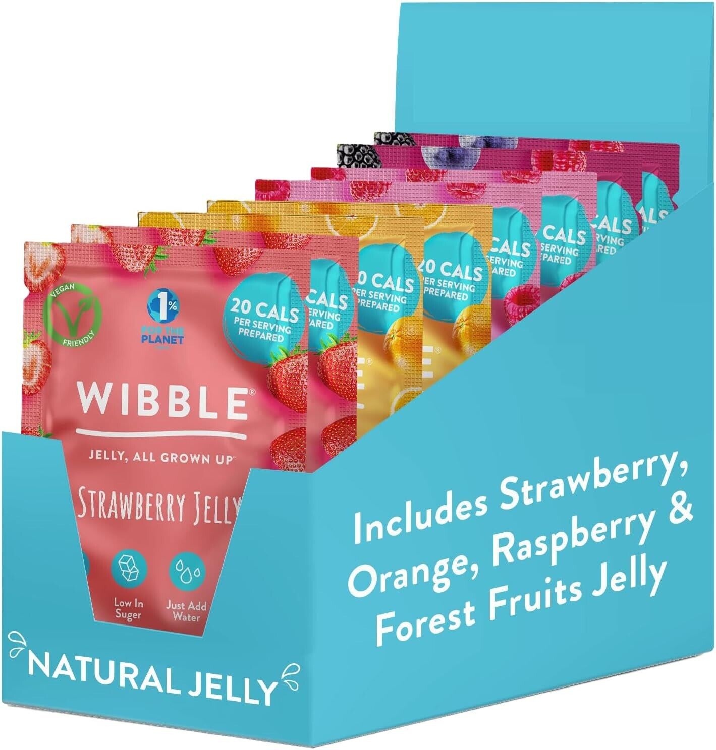 Wibble Natural Jelly Crystals, 8 pack, Variety Pack, Quick Set, Low Sugar, Plan
