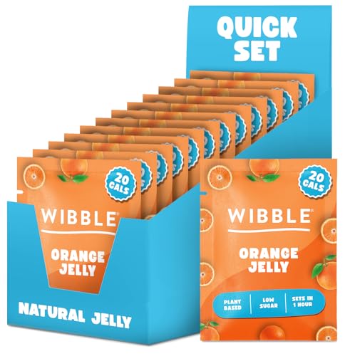 Wibble Jelly Crystals, Orange Natural Jelly Powders, Quick Set, 12 pack, Low Sugar, Plant-Based, Low Calorie Snack,Healthy Dessert, Serves 4, Vegan Jelly Crystals, Vegetarian Jello Powder, Sweets
