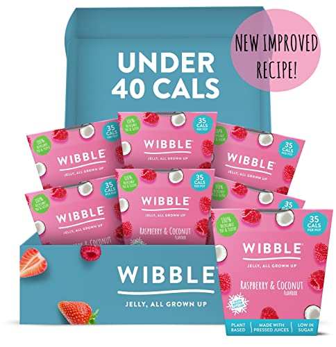 Wibble Jelly Pots, Raspberry, 12 Pack, Plant Based, 25 Cals, Low Calorie, Low Sugar, Vegan, Vegetarian, Jello