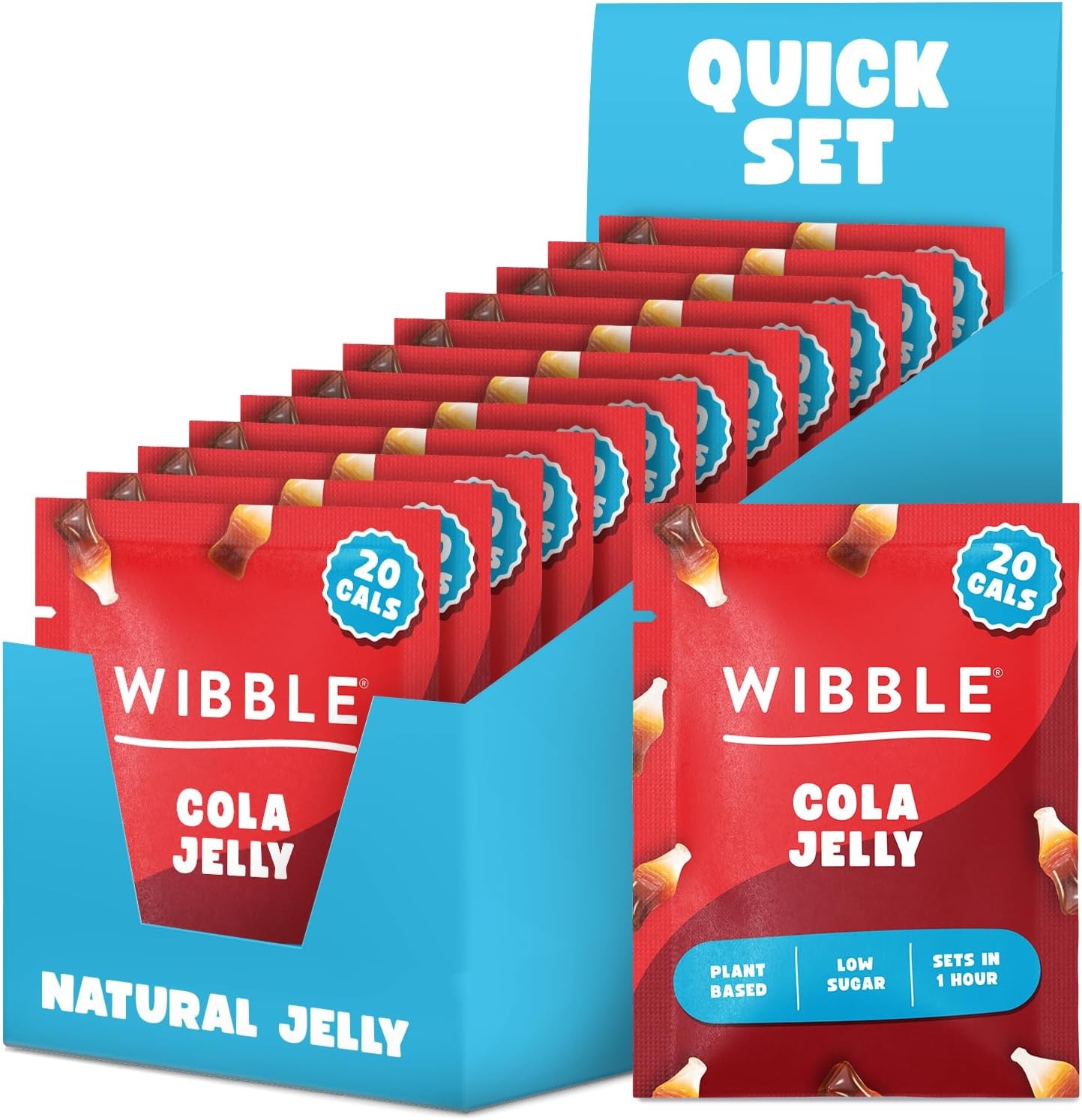Wibble Cola Natural Jelly Crystals, Quick Set, 12 pack, Jello, Low Sugar, Plant-Based, Low Calorie Snack, Healthy Dessert, Serves 4, Vegetarian & Vegan