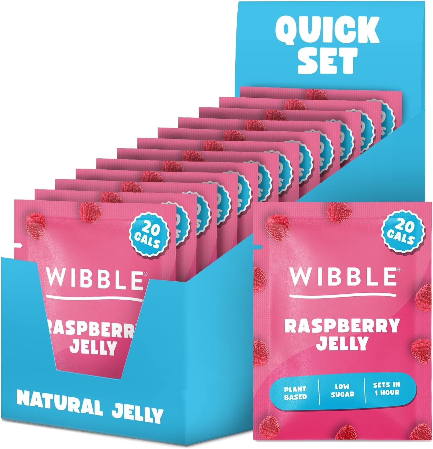 Wibble Jelly Crystals, Raspberry Natural Jelly Powders, Quick Set, 12 Pack, Jello, Low Sugar, Plant-Based, Low Calorie Snack, Healthy Dessert, Serves 4, Vegan Jelly Crystals, Vegetarian Jello Powder