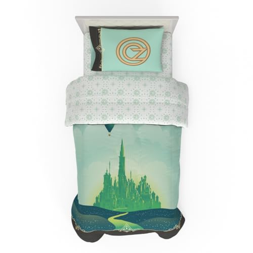 Franco Collectibles Wicked Elphaba and Glinda Bedding 4 Piece Super Soft Reversible Comforter and Sheet Set, Twin, (Officially Licensed Product)