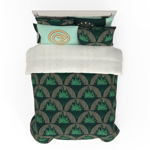 Franco Collectibles Wicked Elphaba and Glinda Bedding 5 Piece Super Soft Reversible Comforter and Sheet Set, Queen, (Officially Licensed Product)