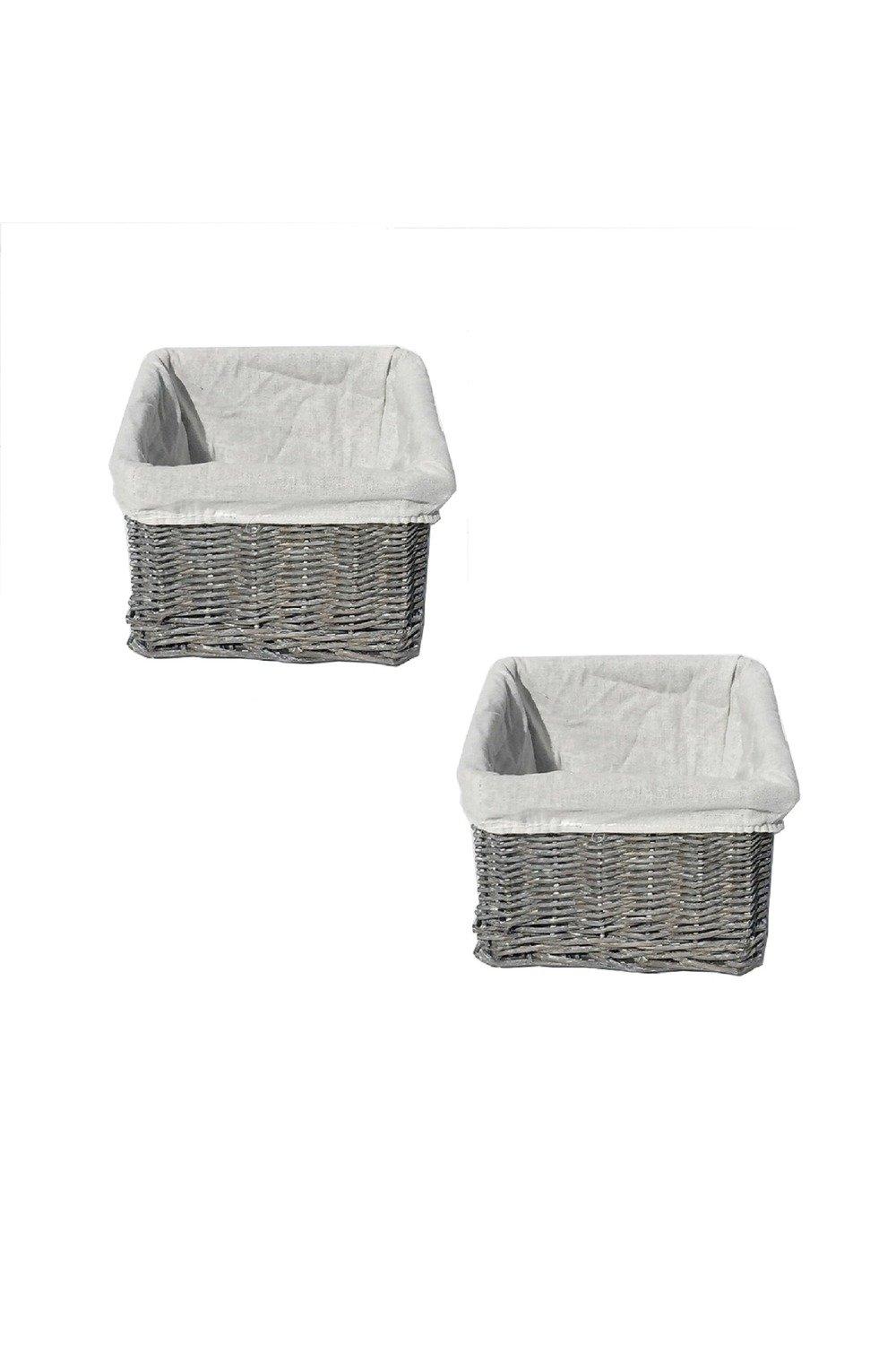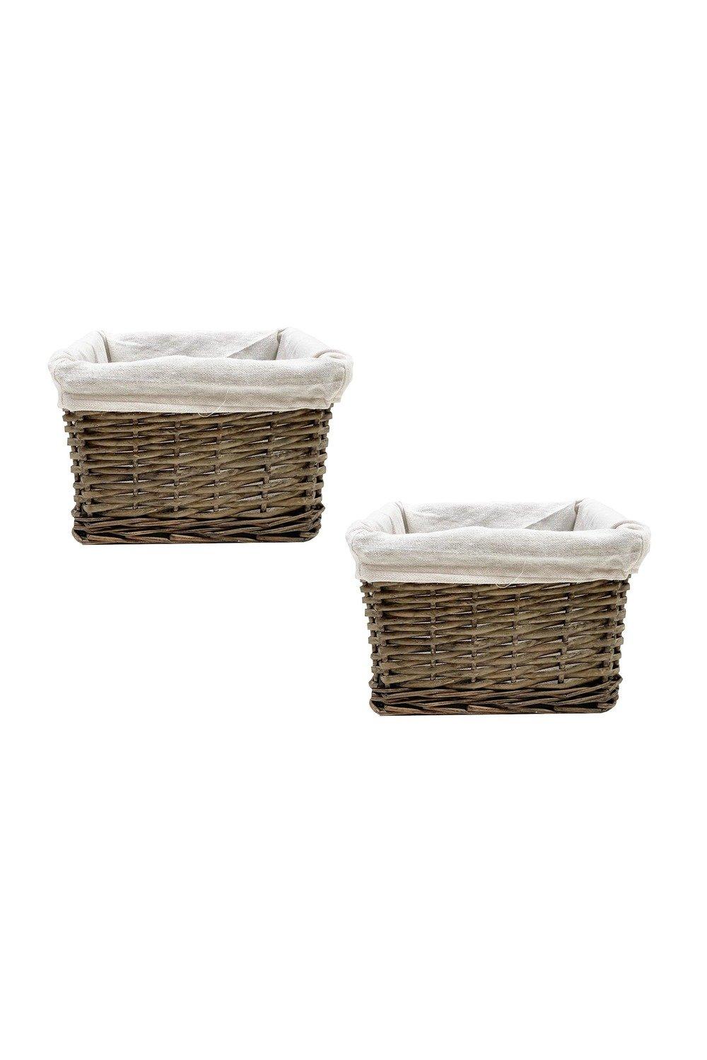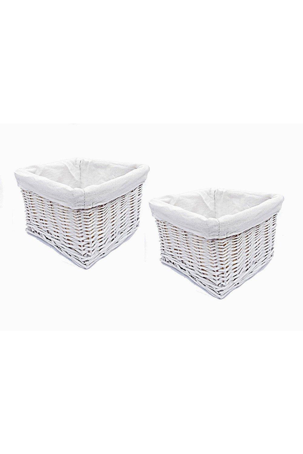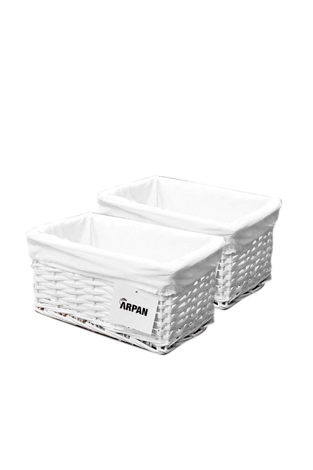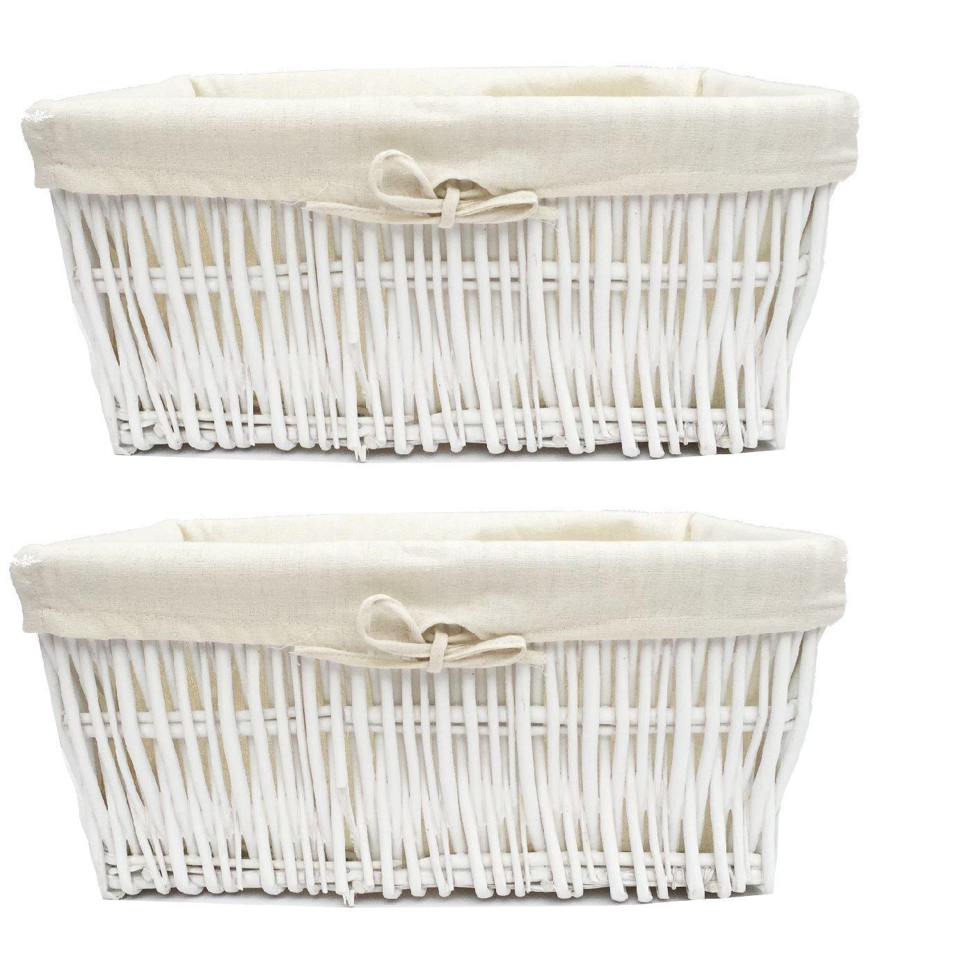 SET OF 2 Wider Large Big Deep Lined Kitchen Wicker Storage Basket Xmas Hamper Basket White,Set of 2 Small 34x22x16cm