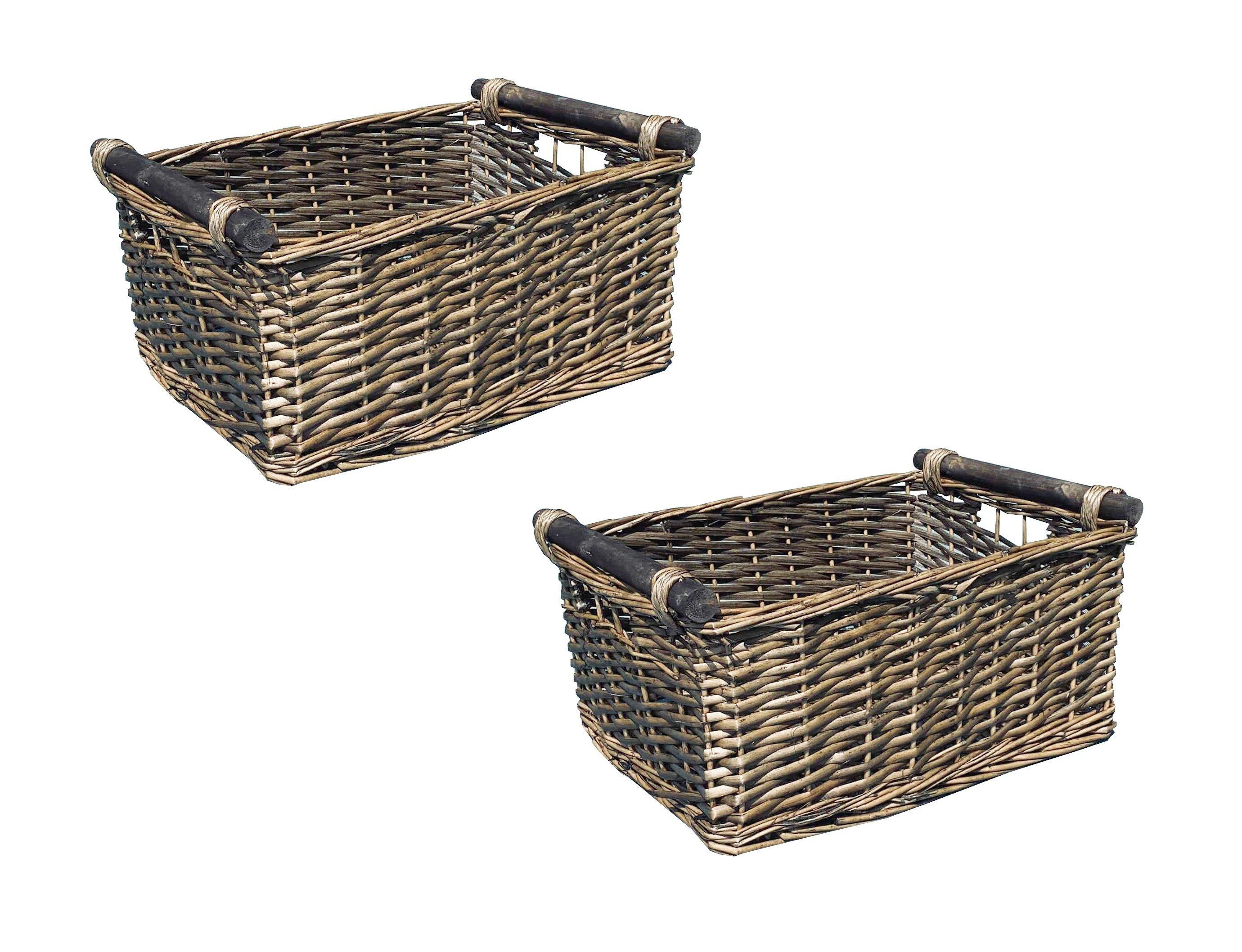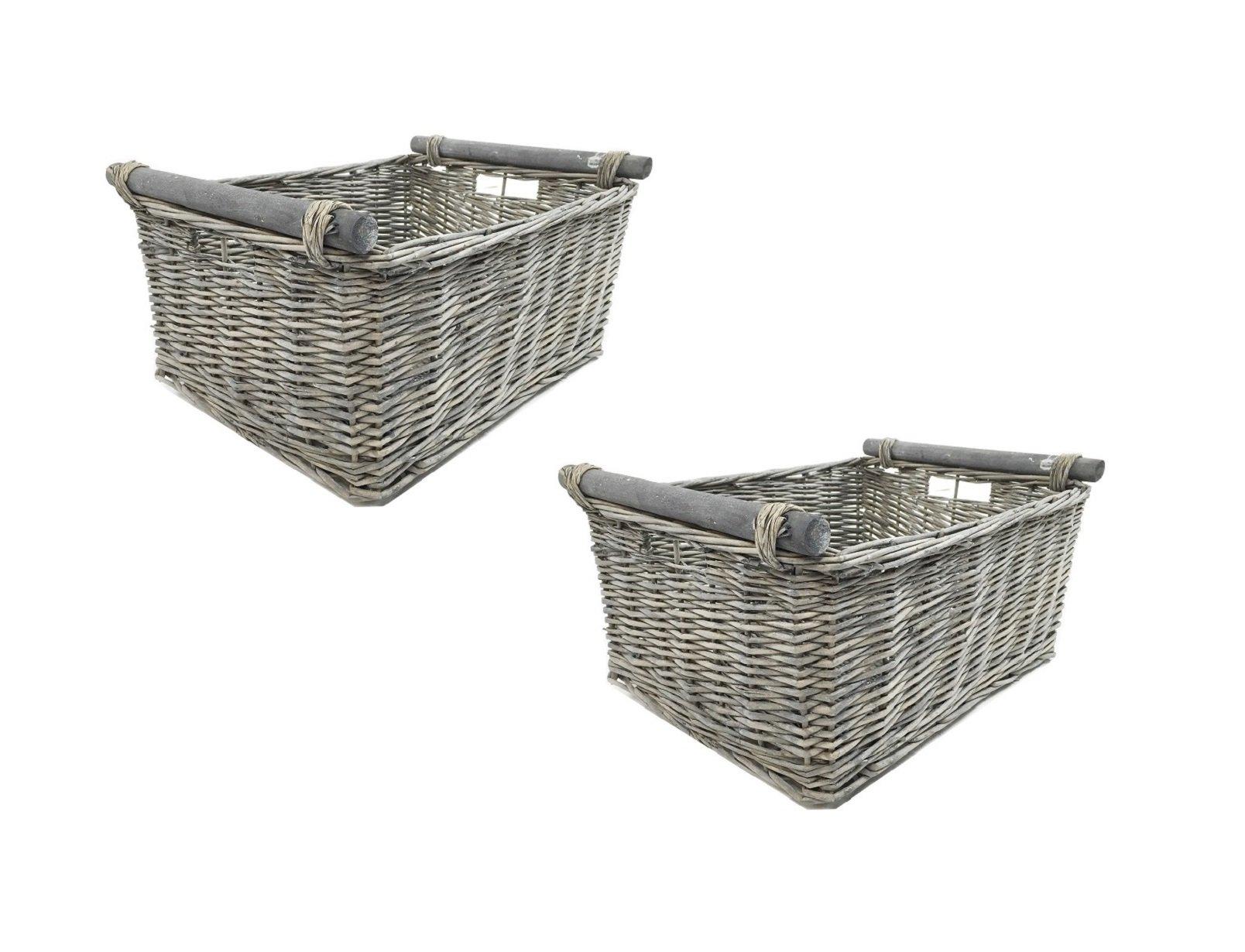 SET OF 2 Kitchen Log Fireplace Wicker Storage Basket With Handles Xmas Empty Hamper Basket Grey,Set of 2 Large 45 x 35 x 20 cm