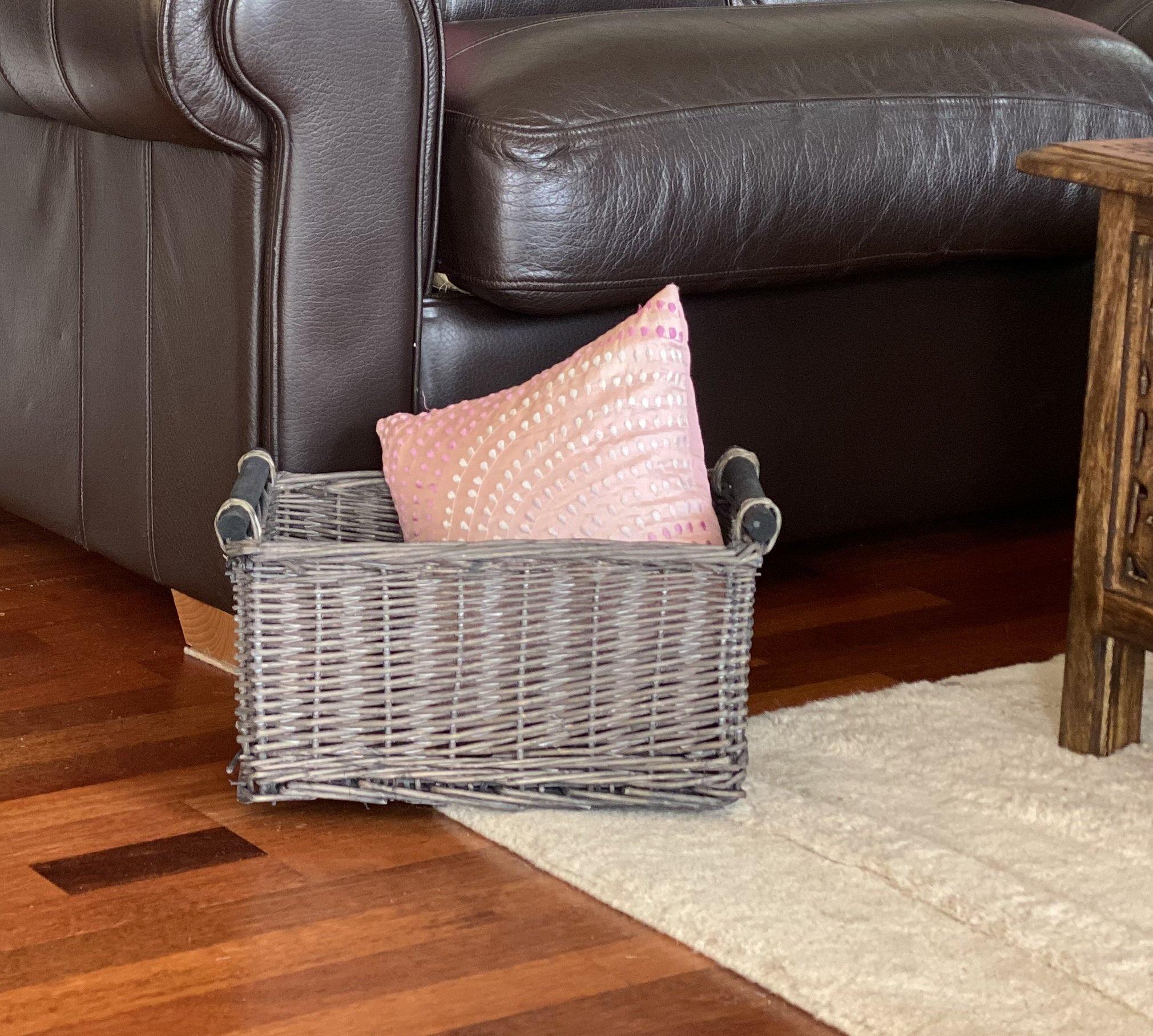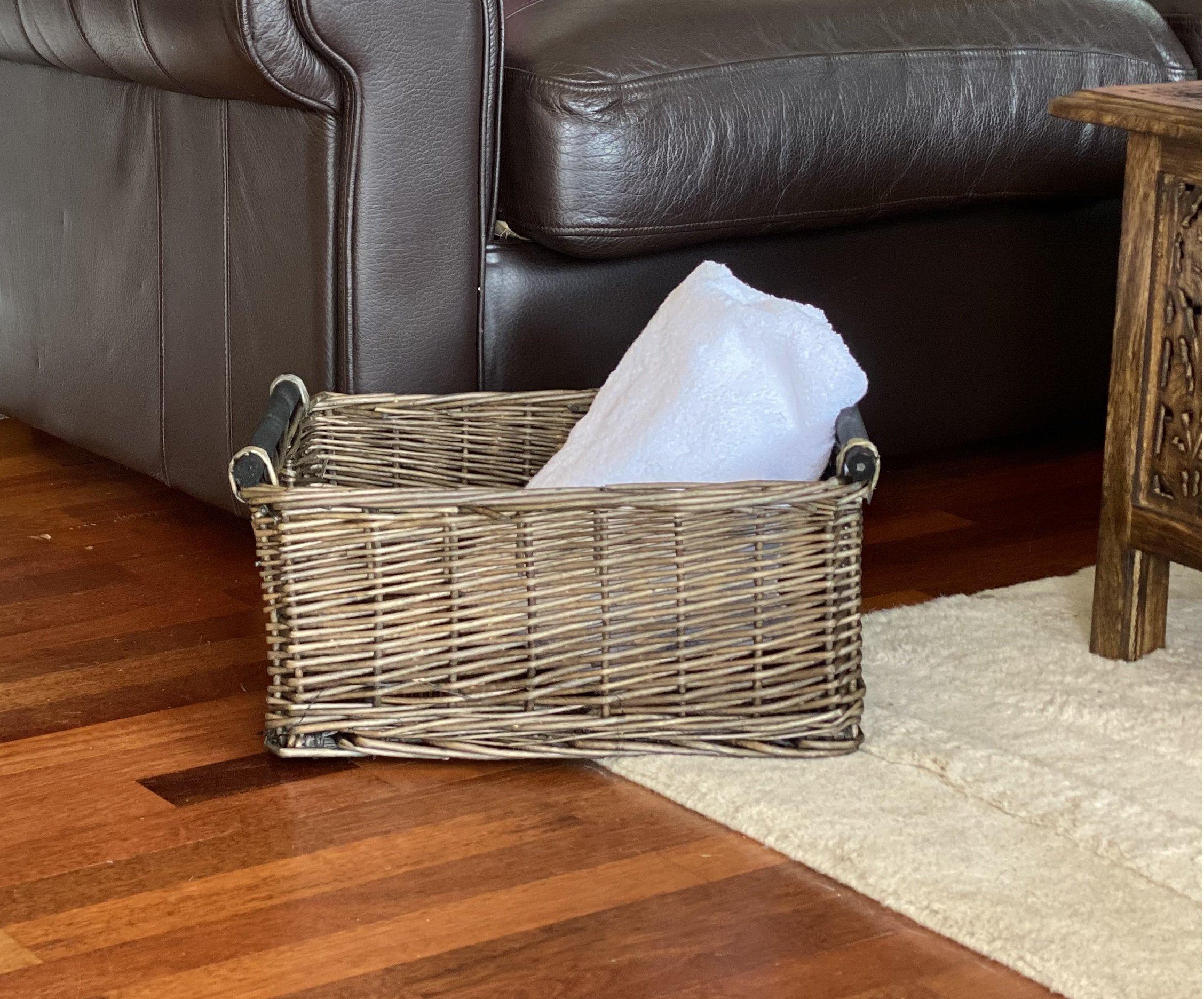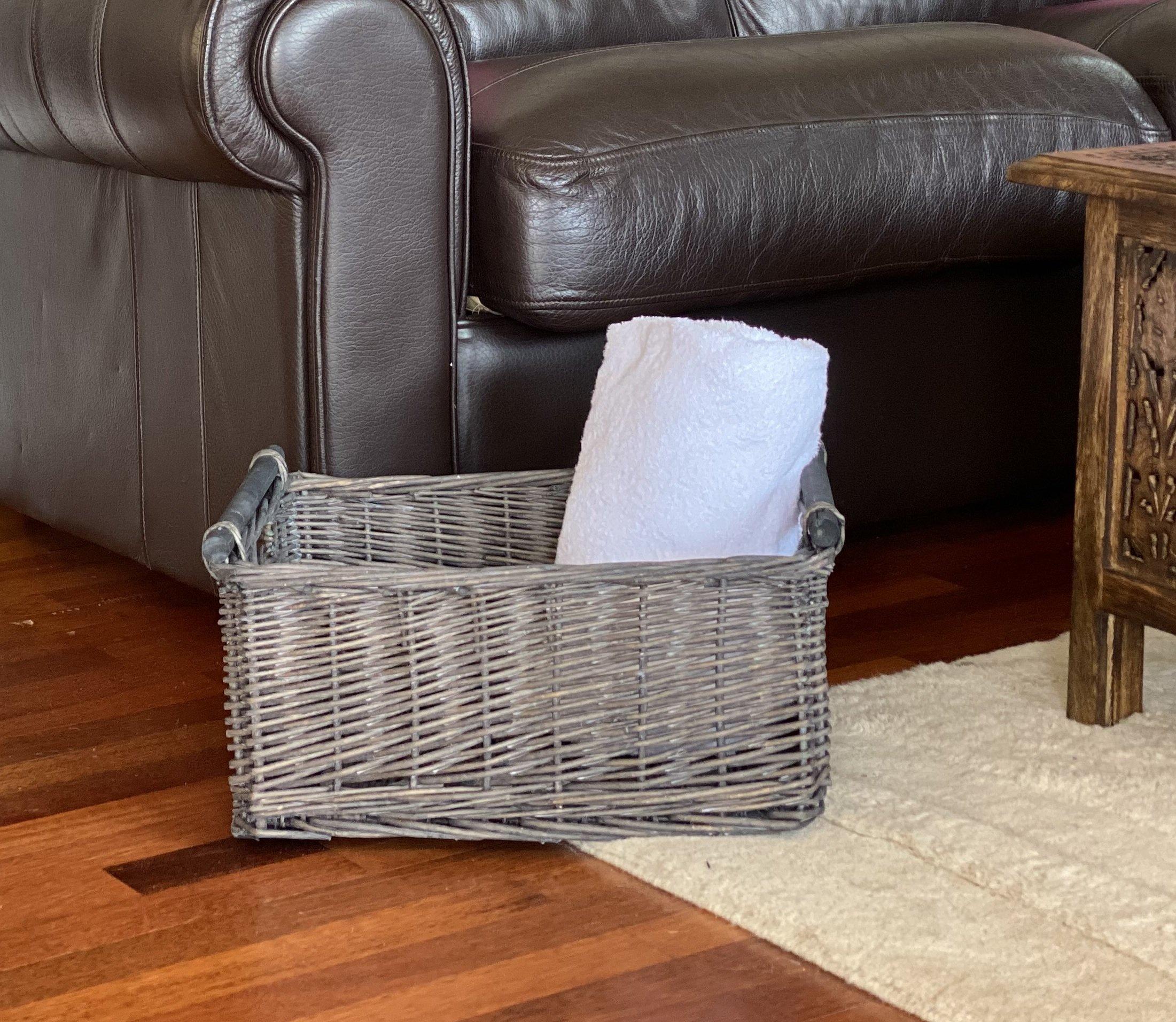 Kitchen Log Fireplace Wicker Storage Basket With Handles Xmas Empty Hamper Basket Grey, Small 31 x 25 x 16 cm