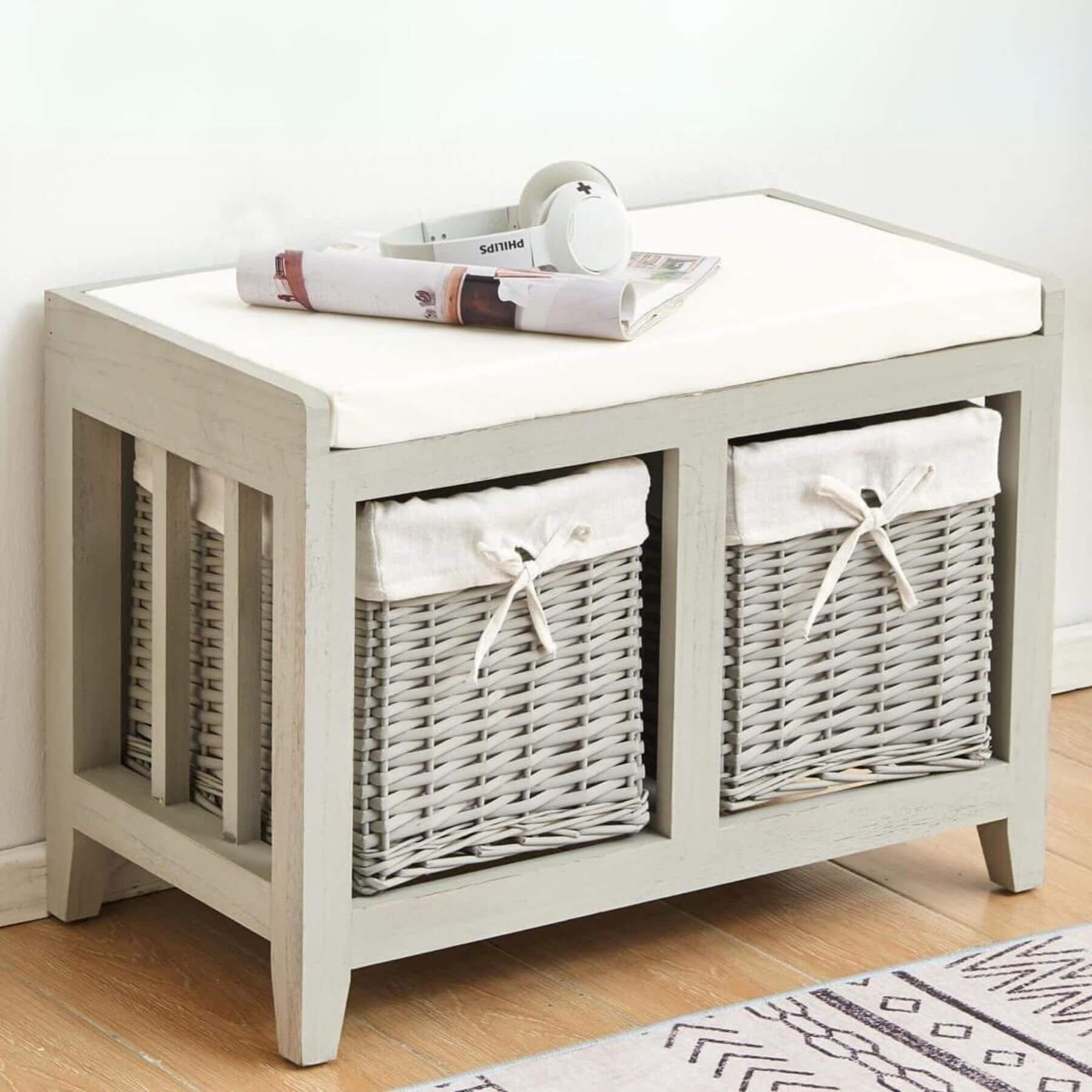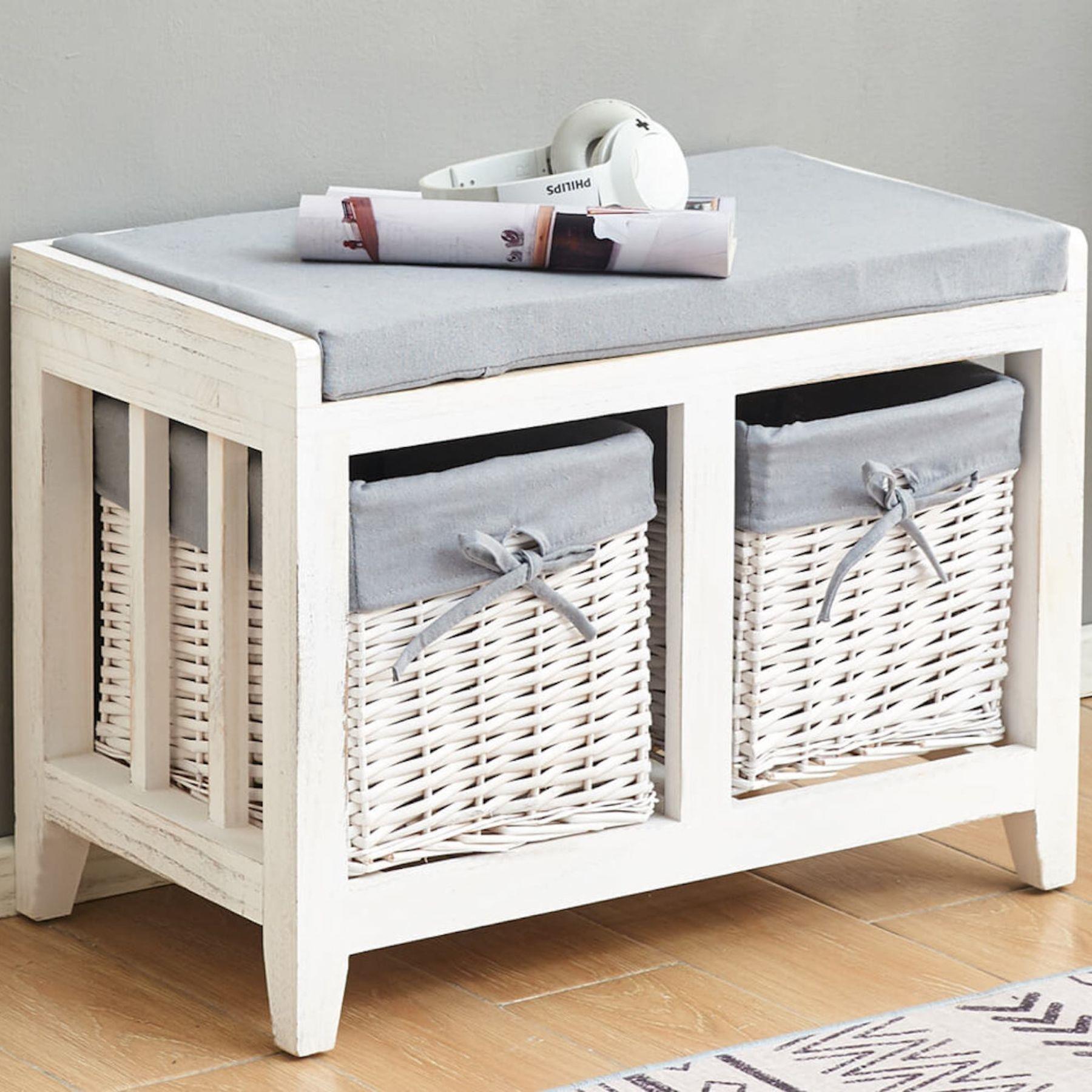 Lincoln 2 Wicker Basket Drawer Shoe Storage Bench Unit