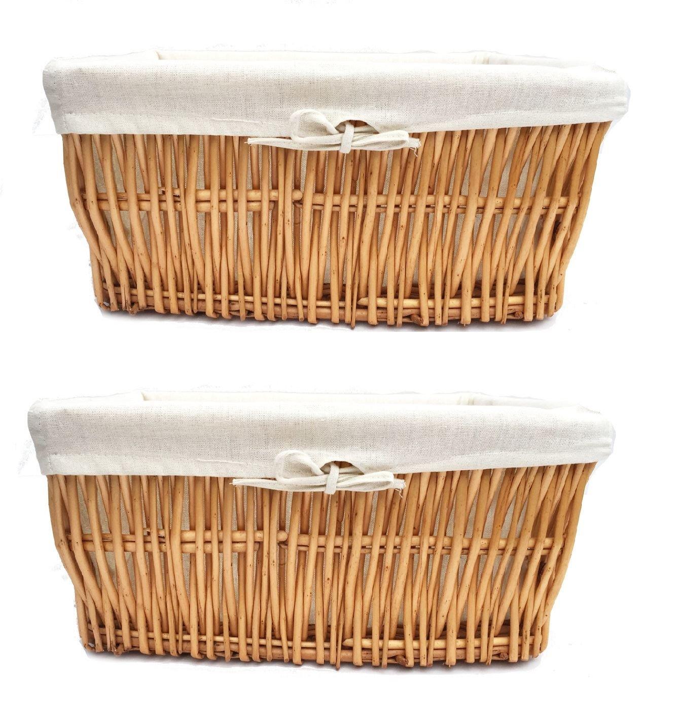 SET OF 2 Wider Large Big Deep Lined Kitchen Wicker Storage Basket Xmas Hamper Basket White,Set of 2 Medium 41x28x18cm