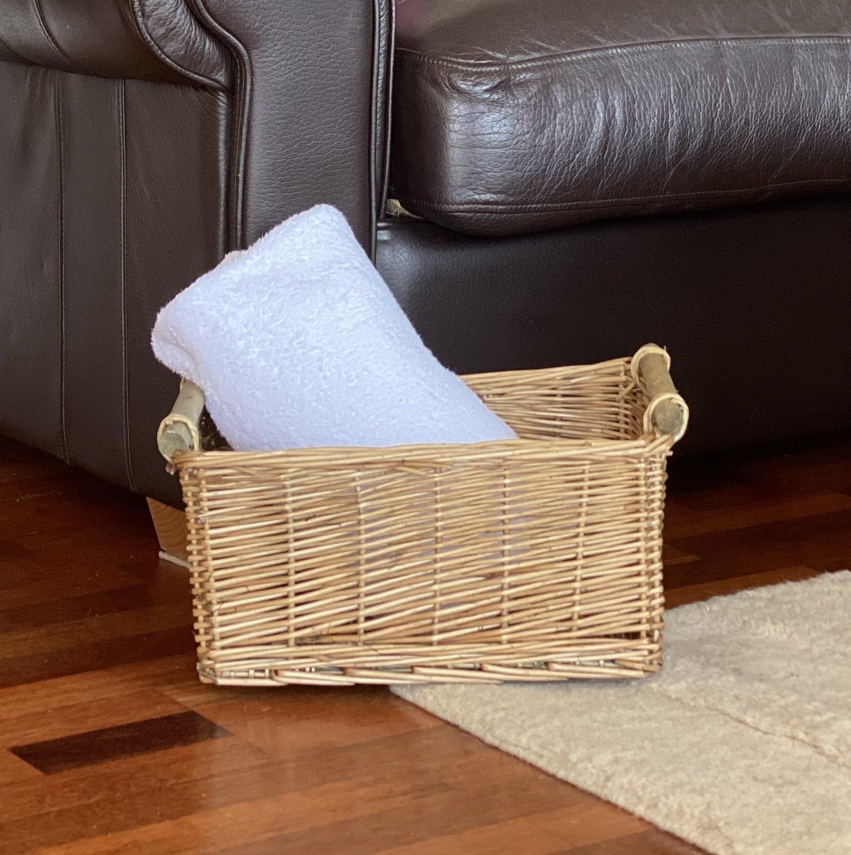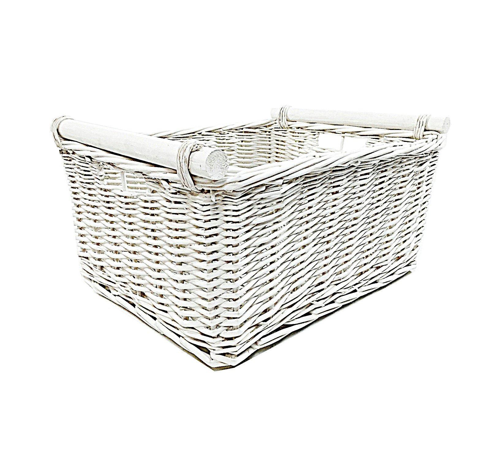 Kitchen Log Fireplace Wicker Storage Basket With Handles Xmas Empty Hamper Basket White,Medium 38 x 30 x 18 cm