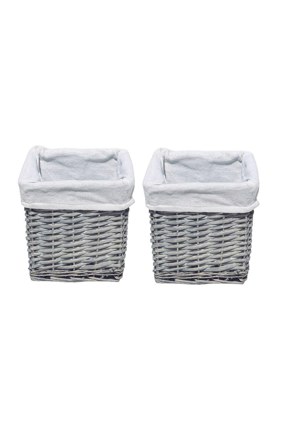 Set Of 2 Wicker Storage Basket With Cloth Lining 22 x 22 x 14.5 cm
