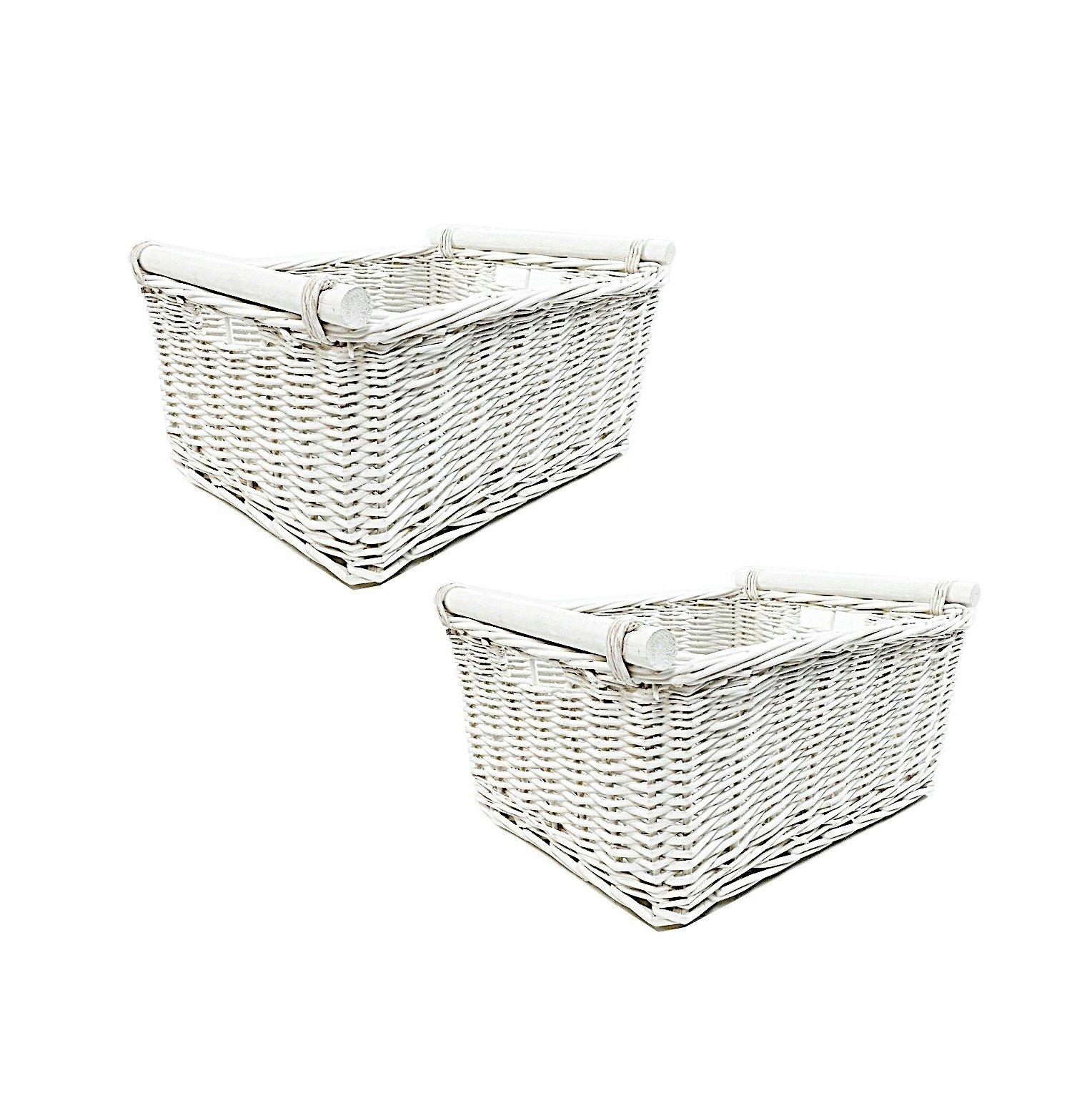 SET OF 2 Kitchen Log Fireplace Wicker Storage Basket With Handles Xmas Empty Hamper Basket White,Set of 2 Medium 38 x 30 x 18 cm