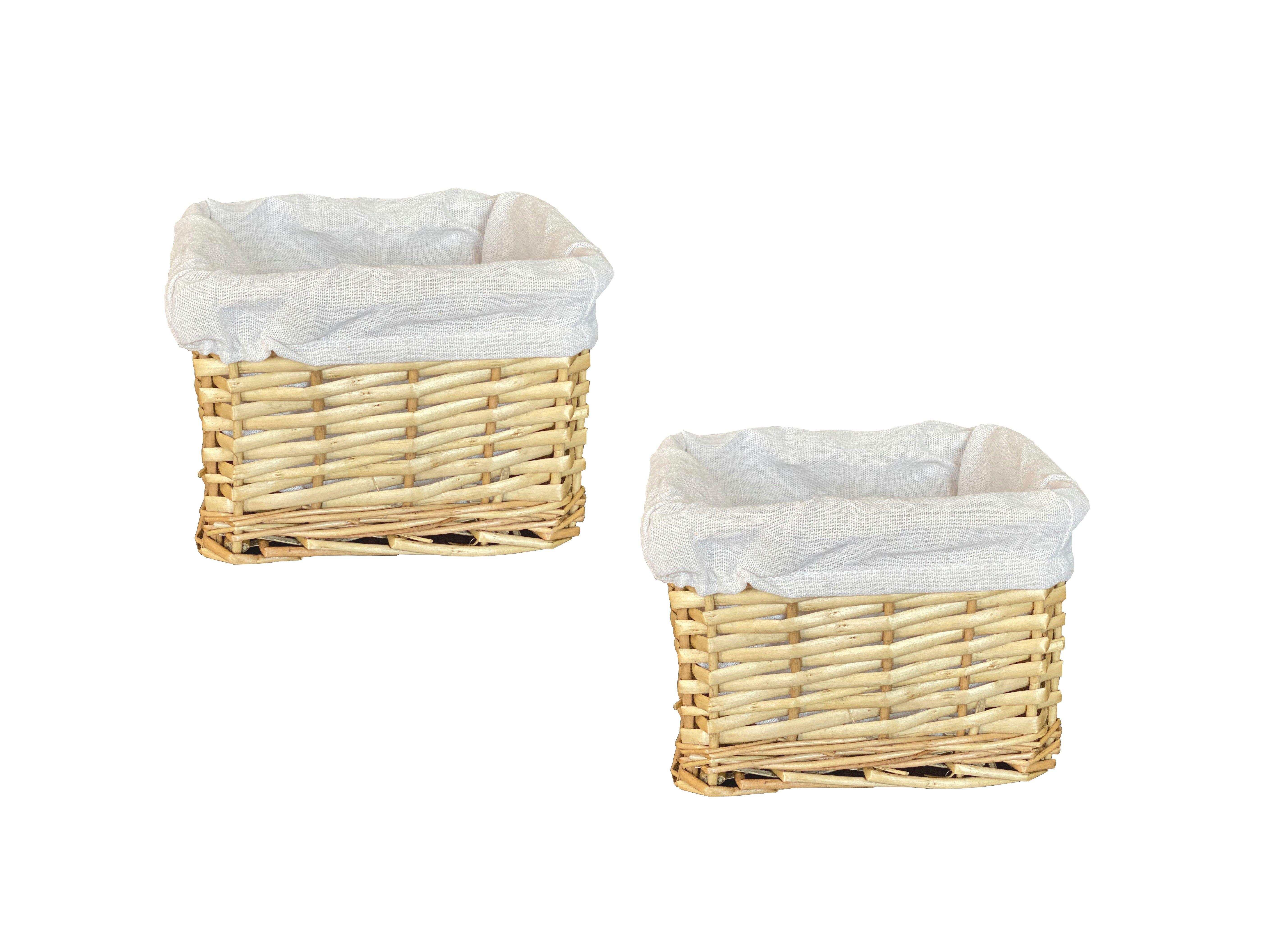 Small Wicker Willow Storage Basket With Cloth Lining 22 x 22 x 14.5 cm