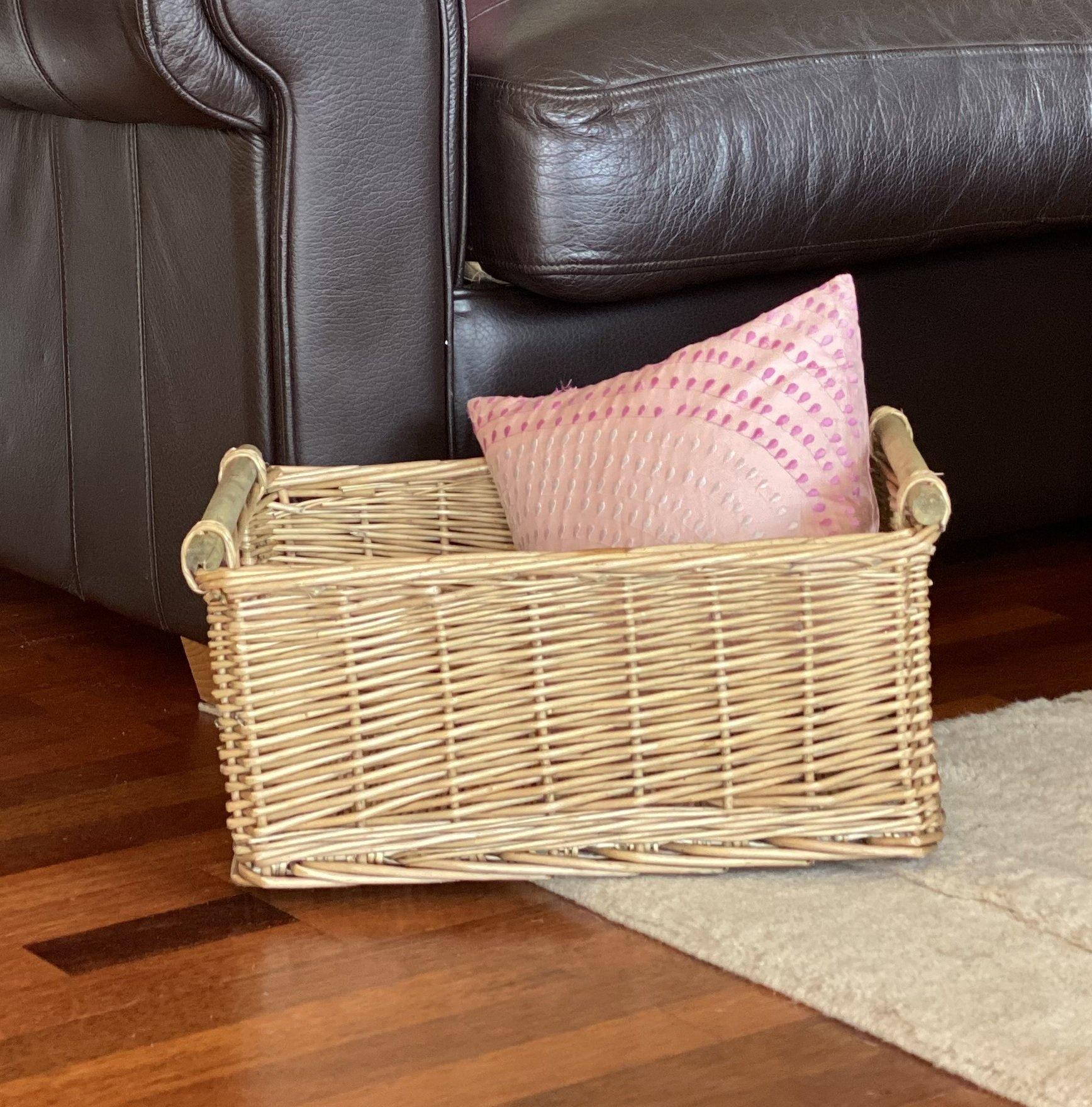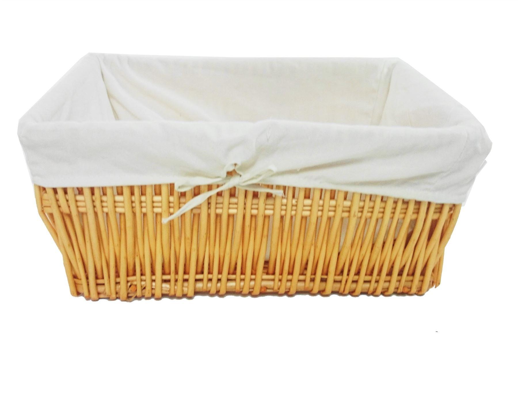 Small Wicker Willow Storage Basket With Cloth Lining 28 x 20 x 21 cm