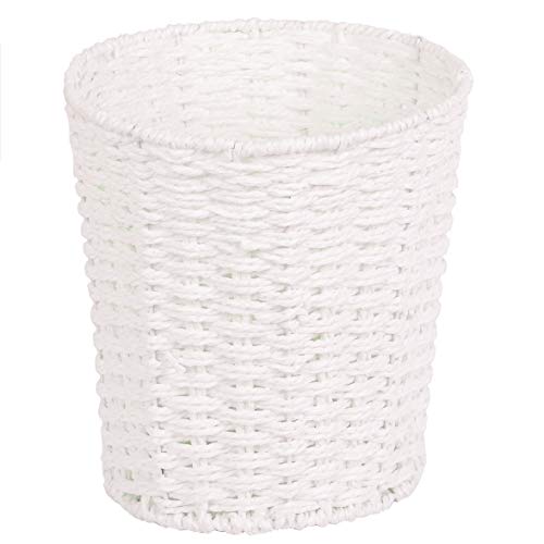 Zuvo Round Wicker Waste Paper Bin and Basket- Rubbish Basket for Bedroom, Bathroom, Offices or Home (White)