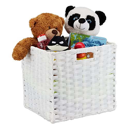 Relaxdays Folding Storage Basket, Square PP Bathroom Organiser Box, Wicker-Look Shelf Bin, 31x32x30 cm, White