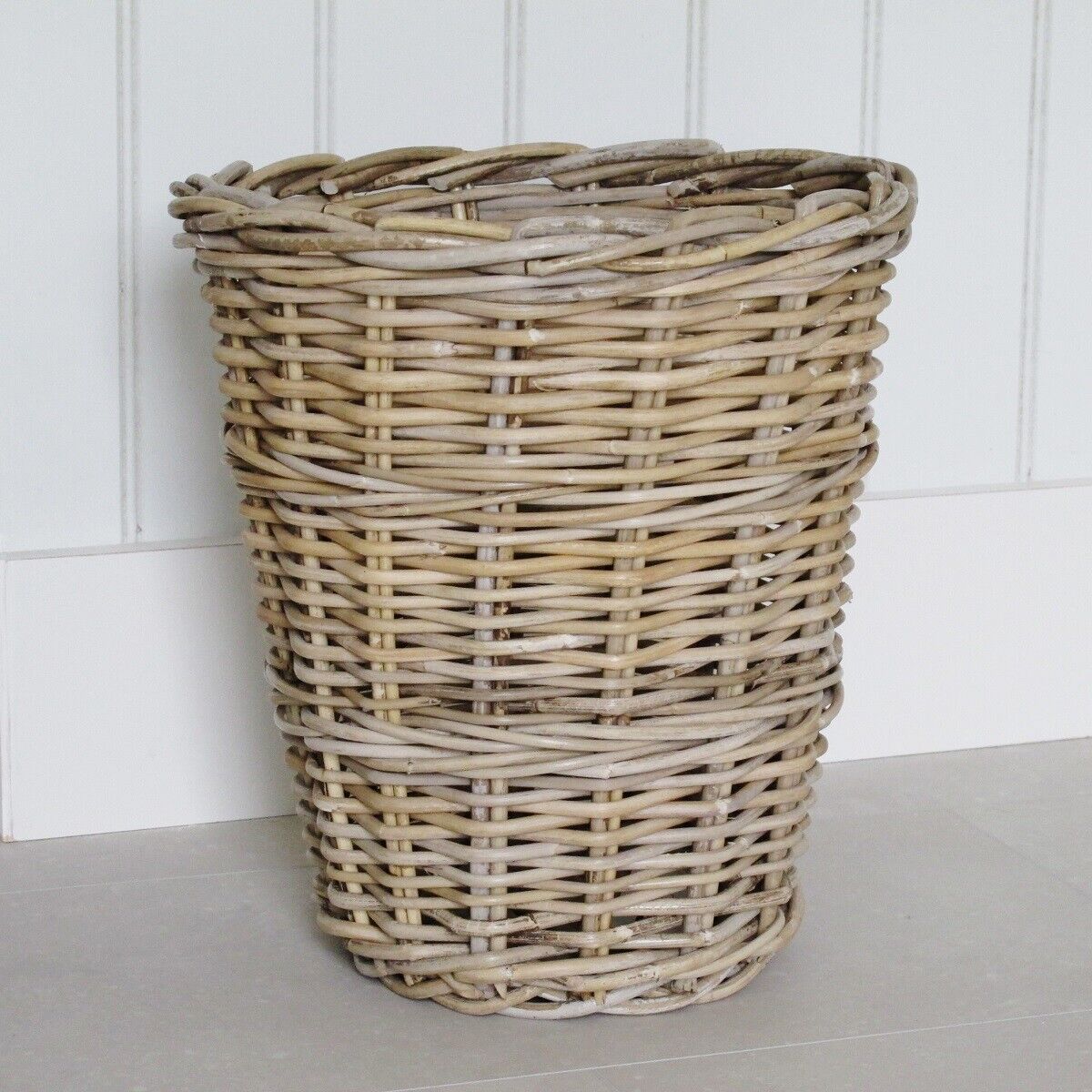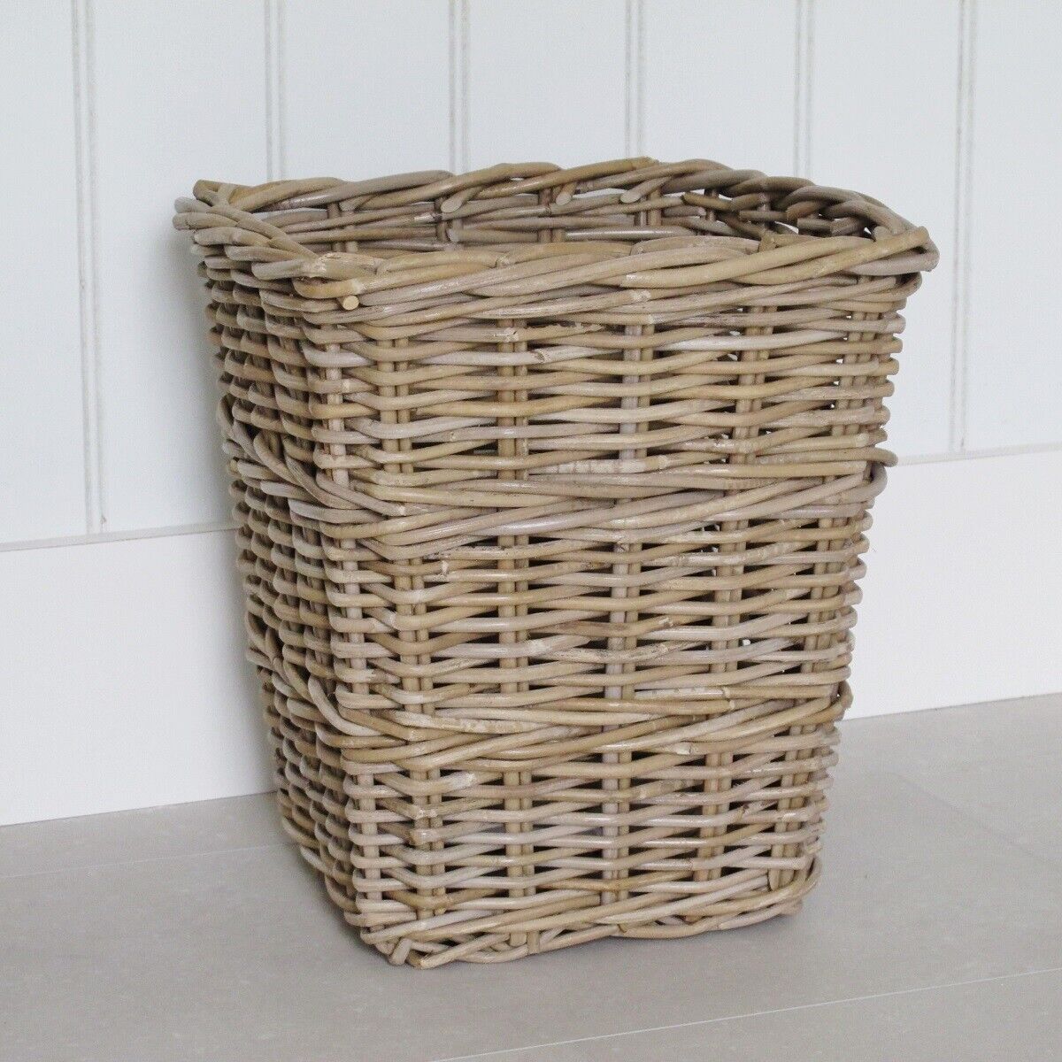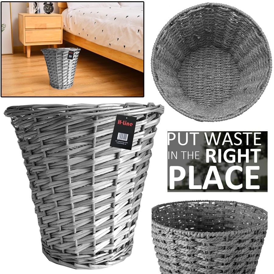 GREY WICKER WILLOW BASKET BIN STORAGE WASTE PAPER RUBBISH BIN BEDROOM OFFICE