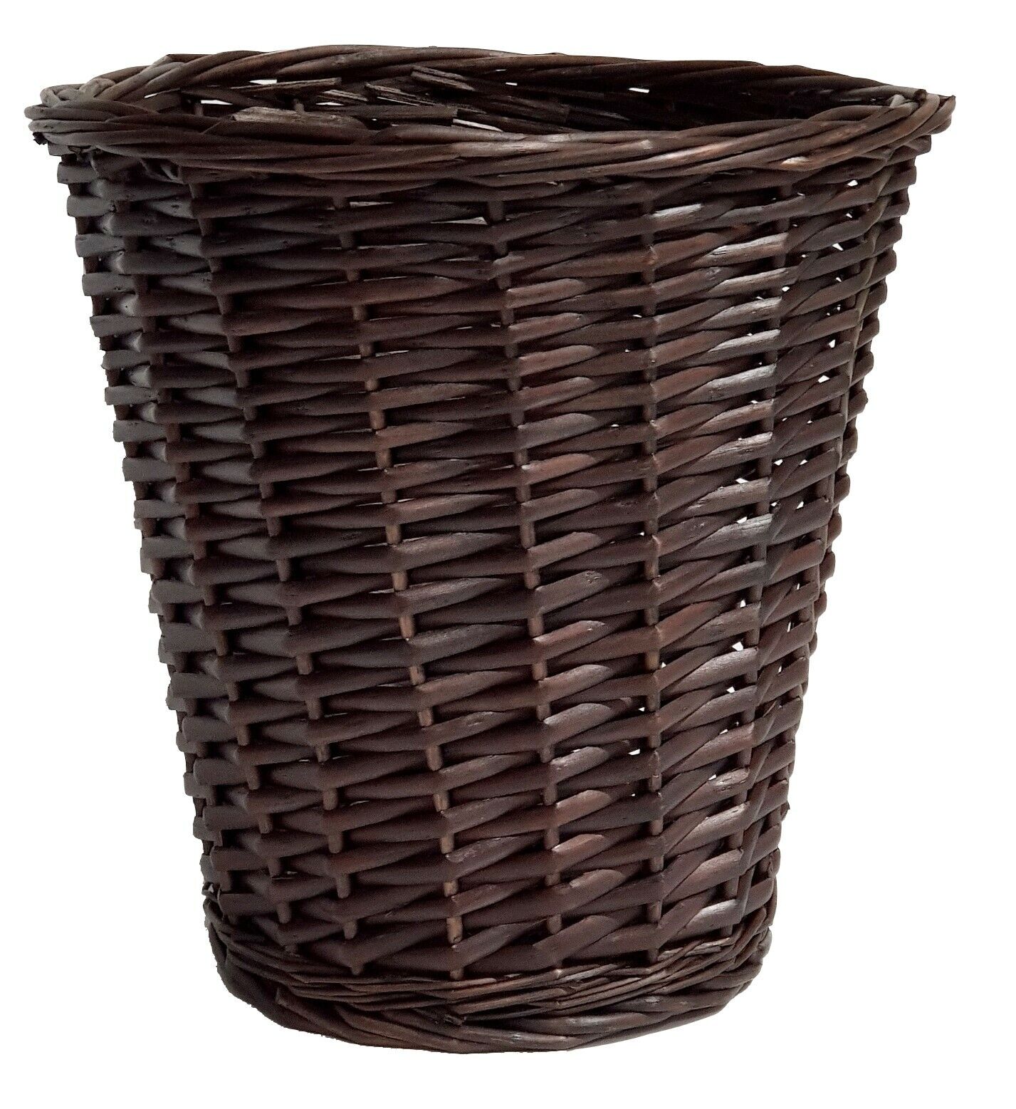 DARK BROWN WICKER WILLOW BASKET BIN STORAGE WASTE PAPER RUBBISH BEDROOM OFFICE