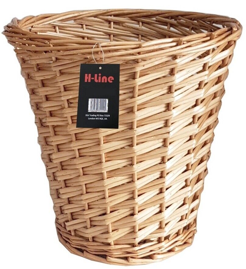 BROWN WICKER WILLOW BASKET BIN STORAGE WASTE PAPER RUBBISH BIN BEDROOM OFFICE