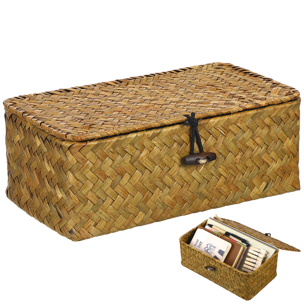 Small Square Wicker Bin with Lid Storage Basket Woven Box Hand-woven Sturdy