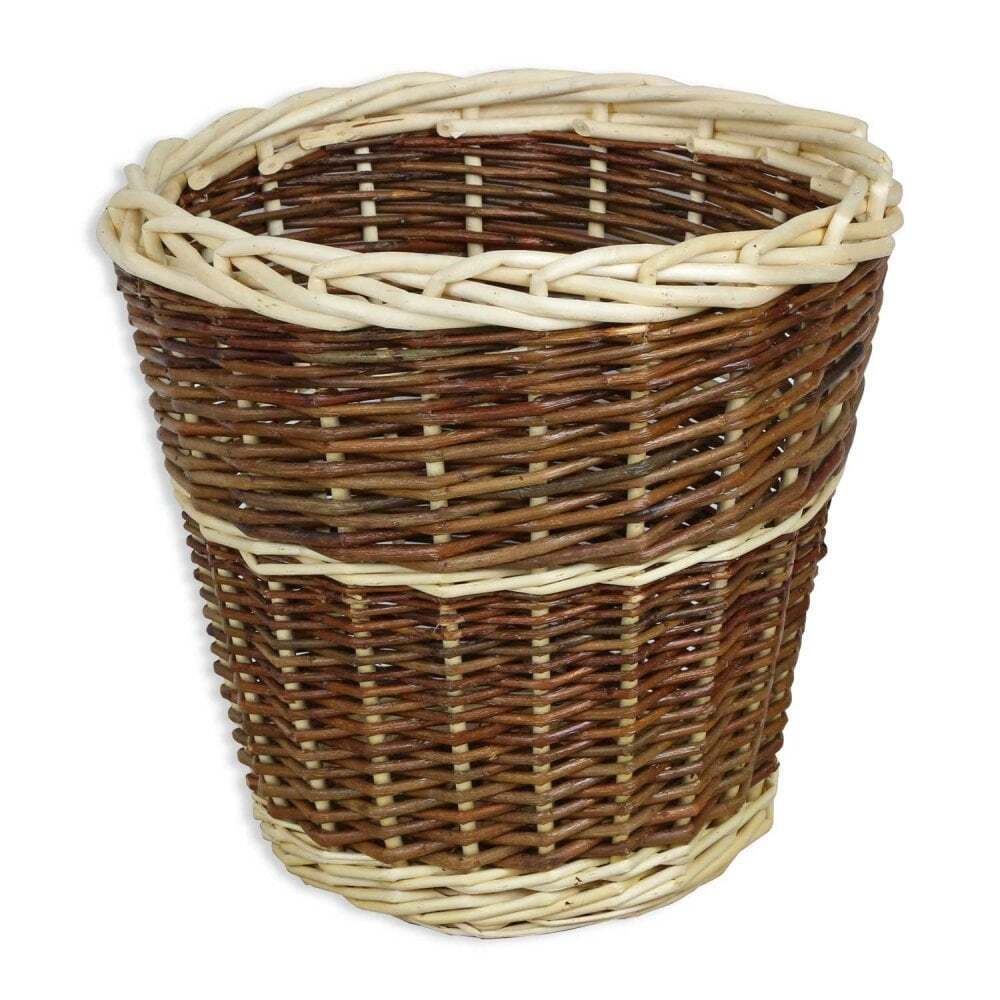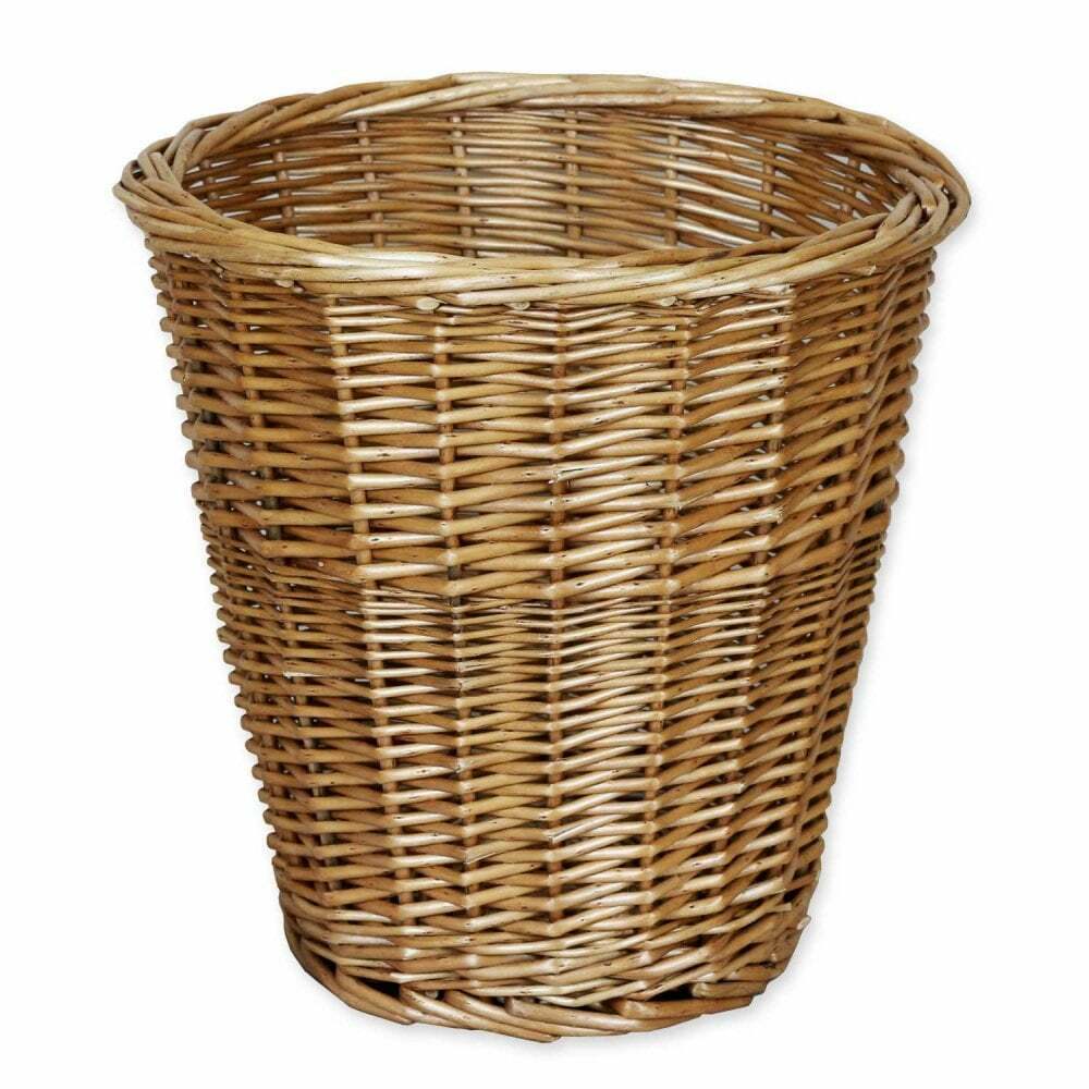 Wicker Waste Paper Bin Basket Antique Wash Woven Willow Handmade Rubbish Tidy
