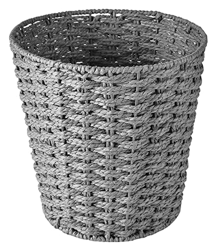 Zuvo Round Wicker Waste Paper Bin and Basket- Rubbish Basket for Bedroom, Bathroom, Offices or Home (Grey)