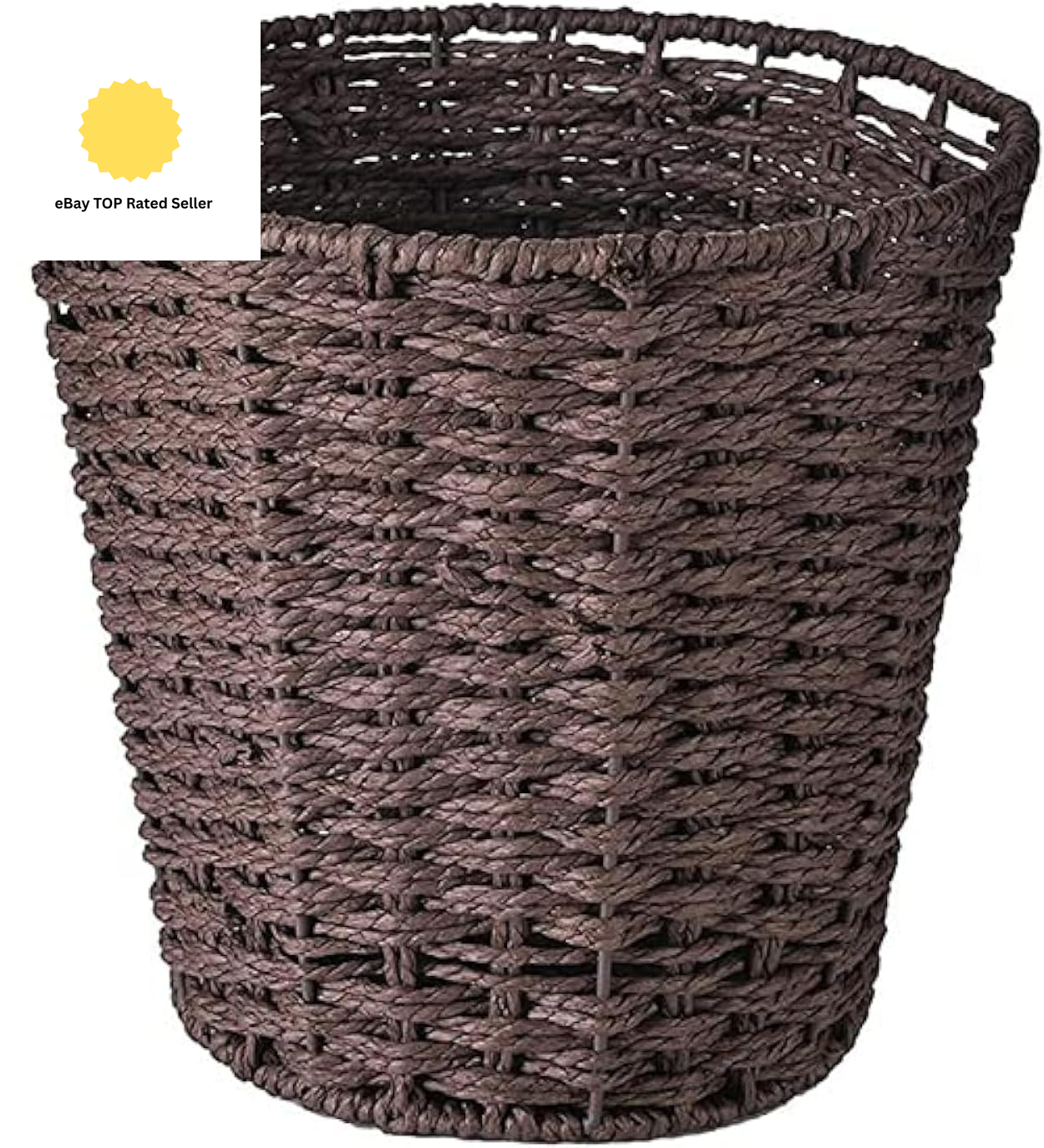 round Wicker Waste Paper Bin and Basket- Rubbish Basket for Bedroom, Bathr