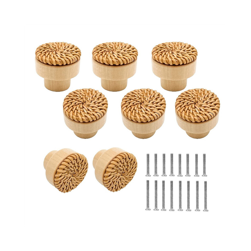 8 Pack Boho Rattan Knobs for Dresser Drawers Wood Cabinet Knobs for Wicker