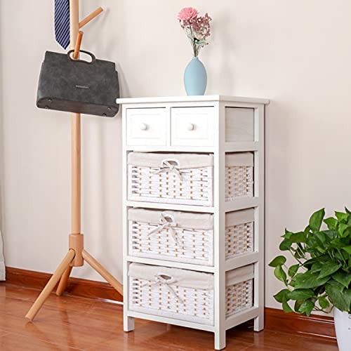 Ruication Bedside Table Bathroom Cabinet with 3 Drawers Wicker Baskets 2 Small Drawers Storage Unit Chest of Drawers Fully Assembled for Living Room Bedroom Bathroom Hallway (White)