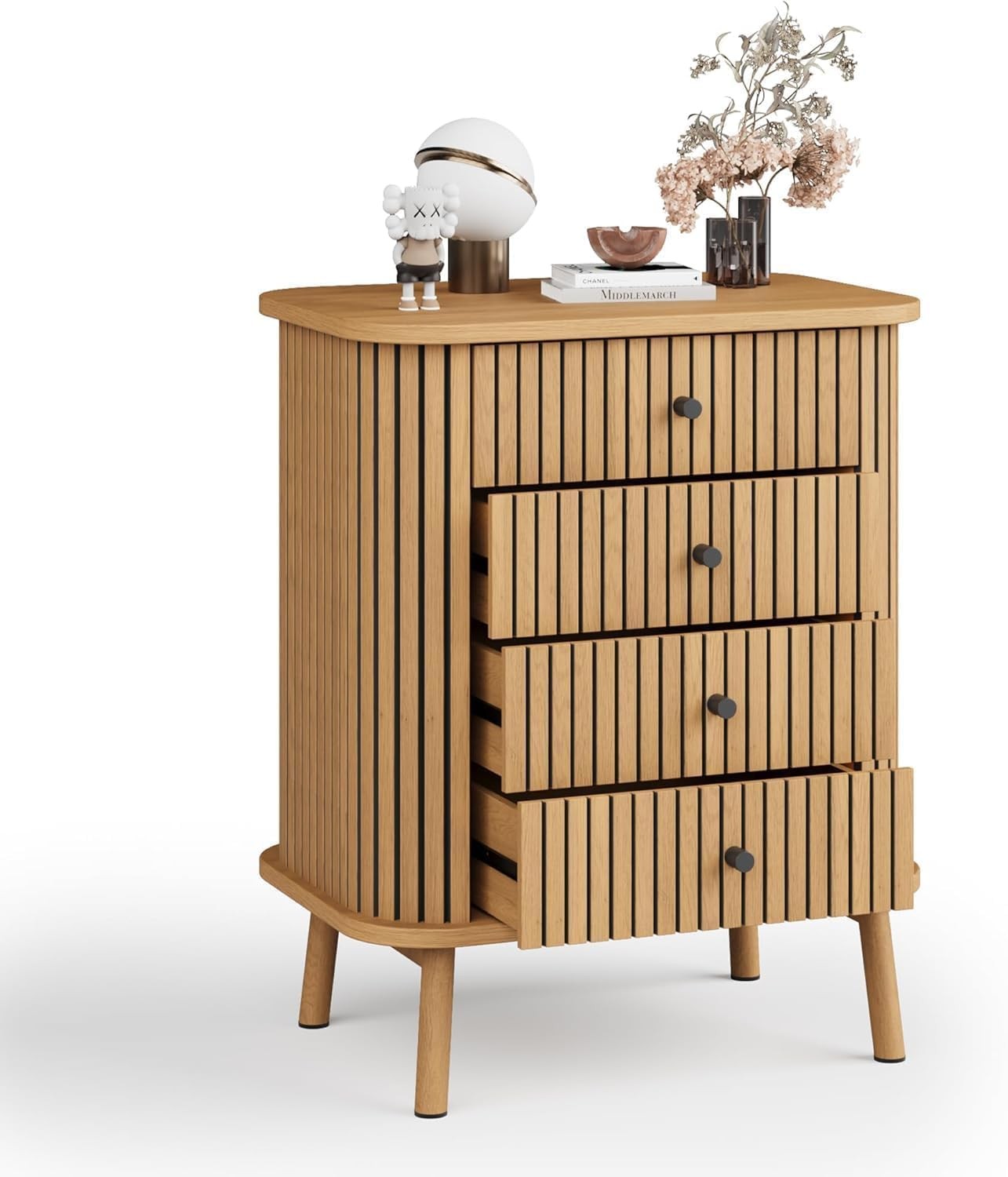 Hapihom Denver 4 Drawer Chest of Drawers, Boho Wicker Dresser Bedroom Storage with Sturdy Handles and Legs, Sideboard Dresser Drawers for Living Room, Hallway, Entryway 60 x 40 x 80 cm