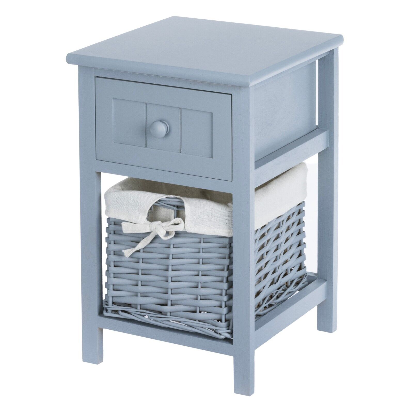 SHABBY CHIC WOODEN CABINET BEDSIDE UNIT TABLES DRAWERS + WICKER STORAGE GREY