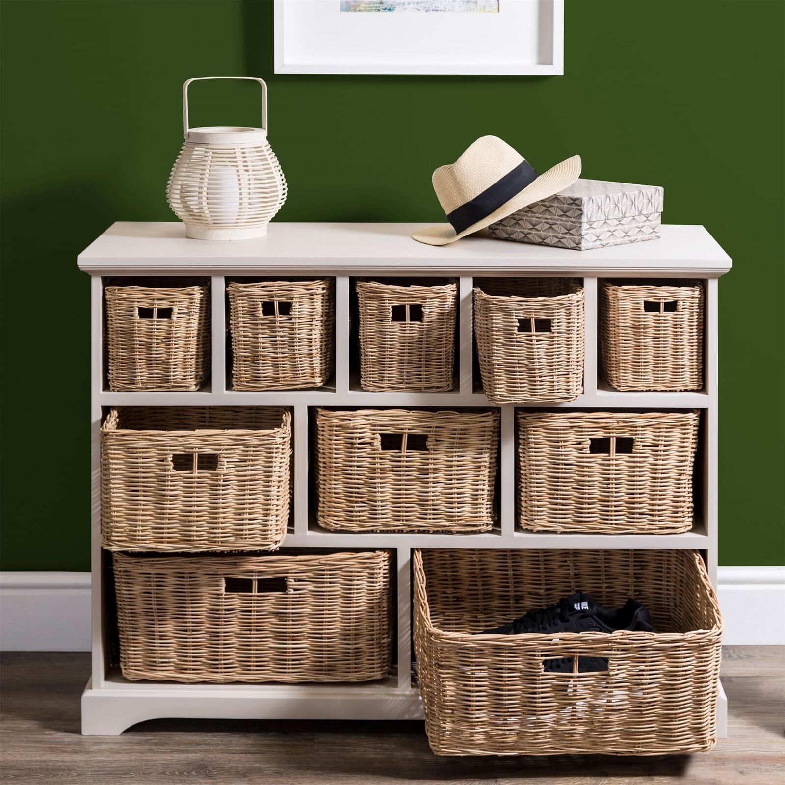 Large 10 Basket Chest of Drawers Wicker Storage Hallway TETBURY Furniture