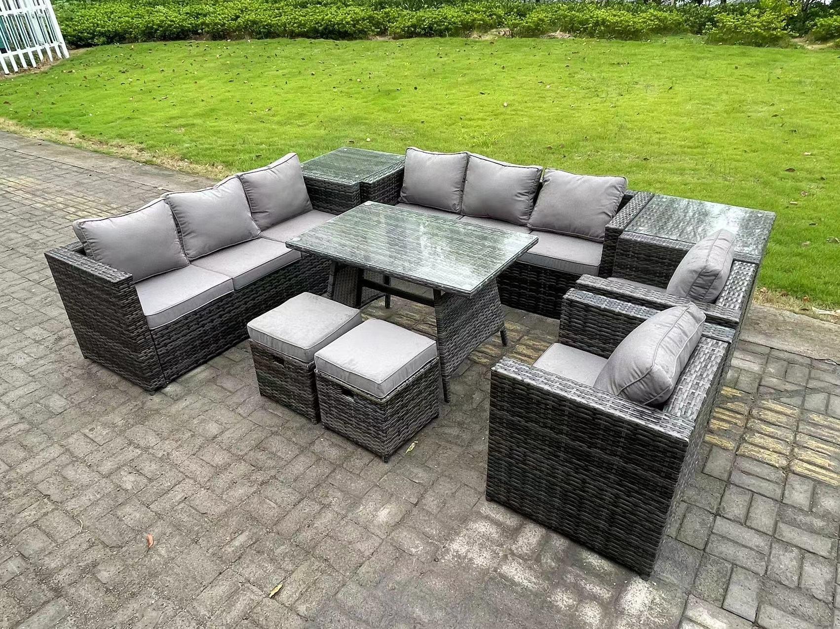 9 Seater Wicker Rattan Outdoor Furniture Lounge Sofa Garden Dining Set with Dining Table 2 Armchairs