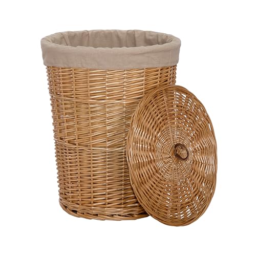 Natural Finish Round Laundry Wicker Basket Cotton Liner with Lid Bathroom Storage (Brown, Medium)