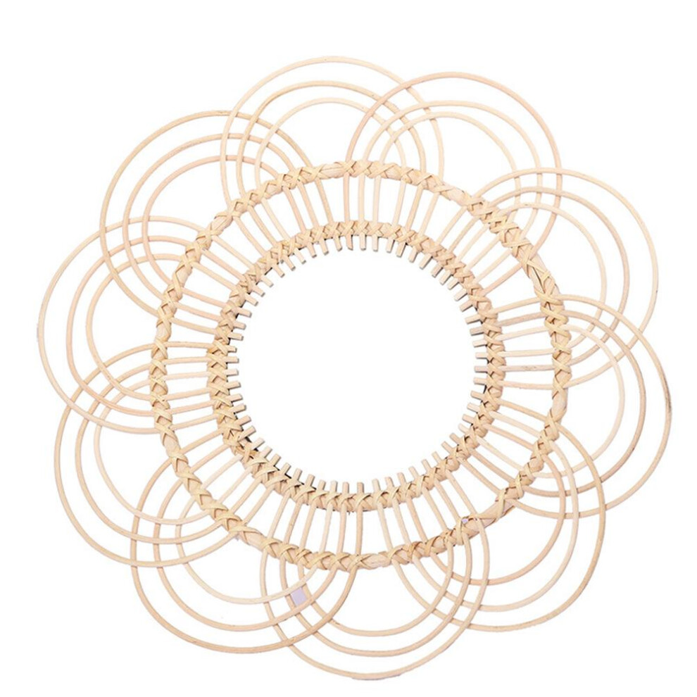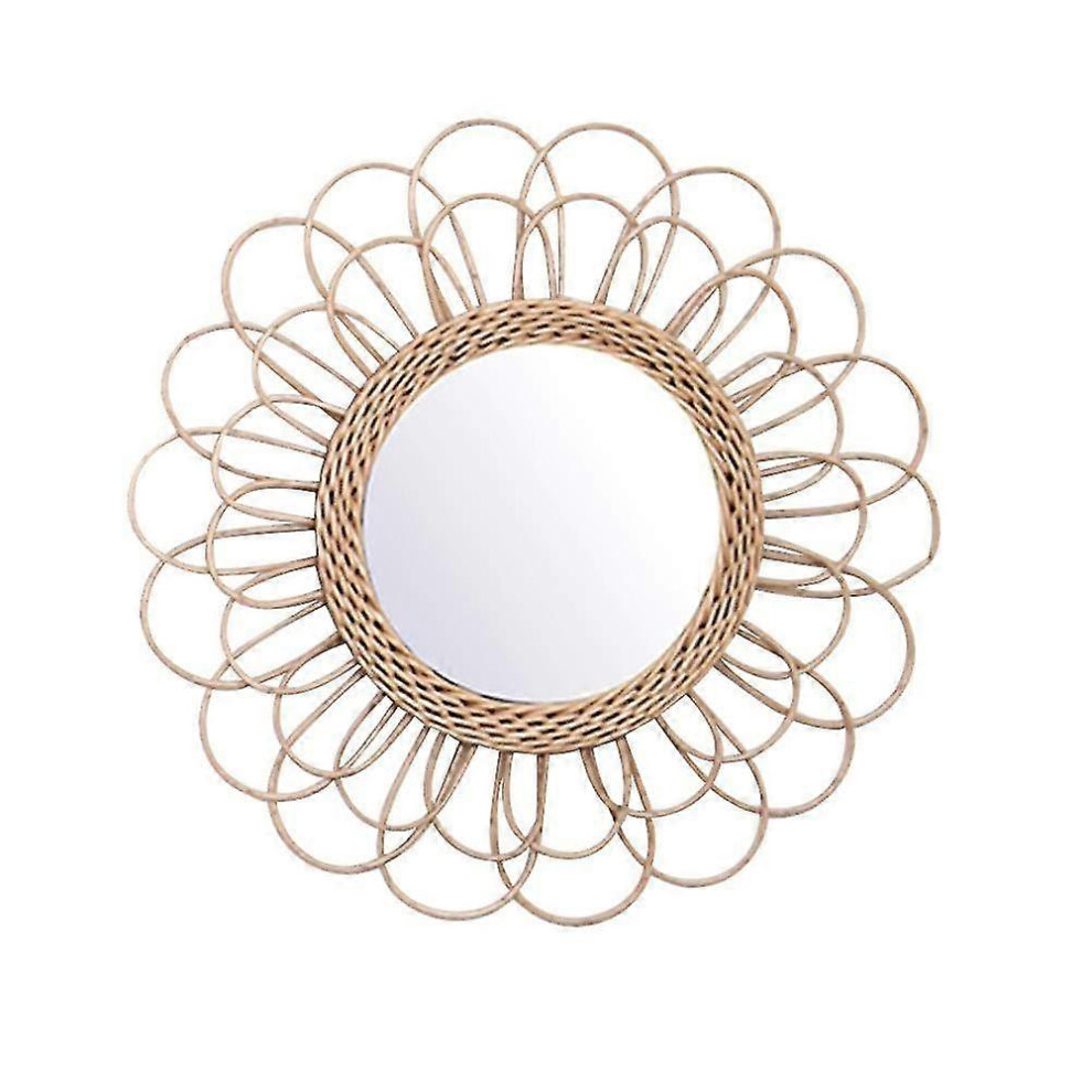 40cm Hanging Mirror Rattan Sunflower Circular Wall Mirror Decor Boho Wicker Dressing Makeup Mirrors
