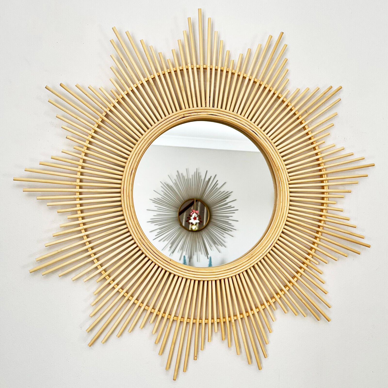 Bamboo Sunburst Wall Mirror 60cm Natural Wood Wicker Frame Boho Style Home Decor