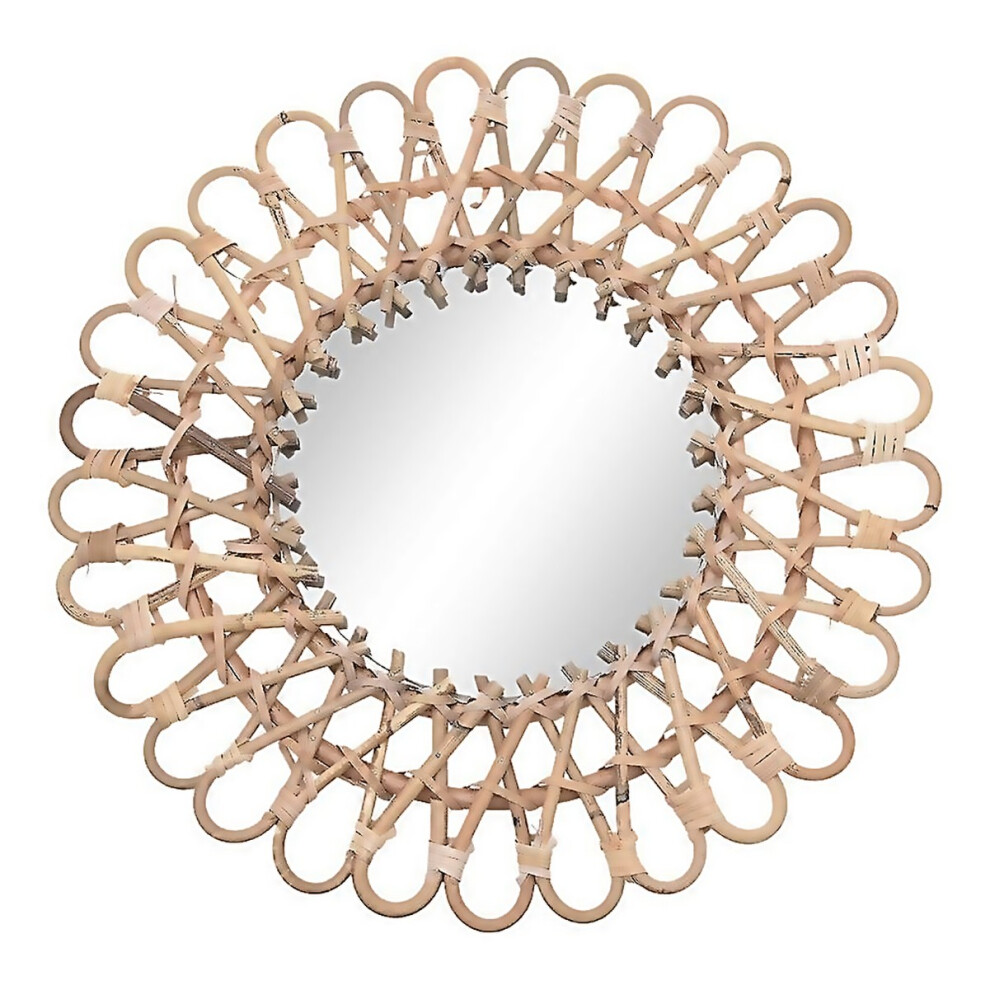 Rattan Wall Mirror, Handcrafted Wicker Mirror with Polished Glass for Crisp Imaging, Perfect for Bohemian Style Home Decor