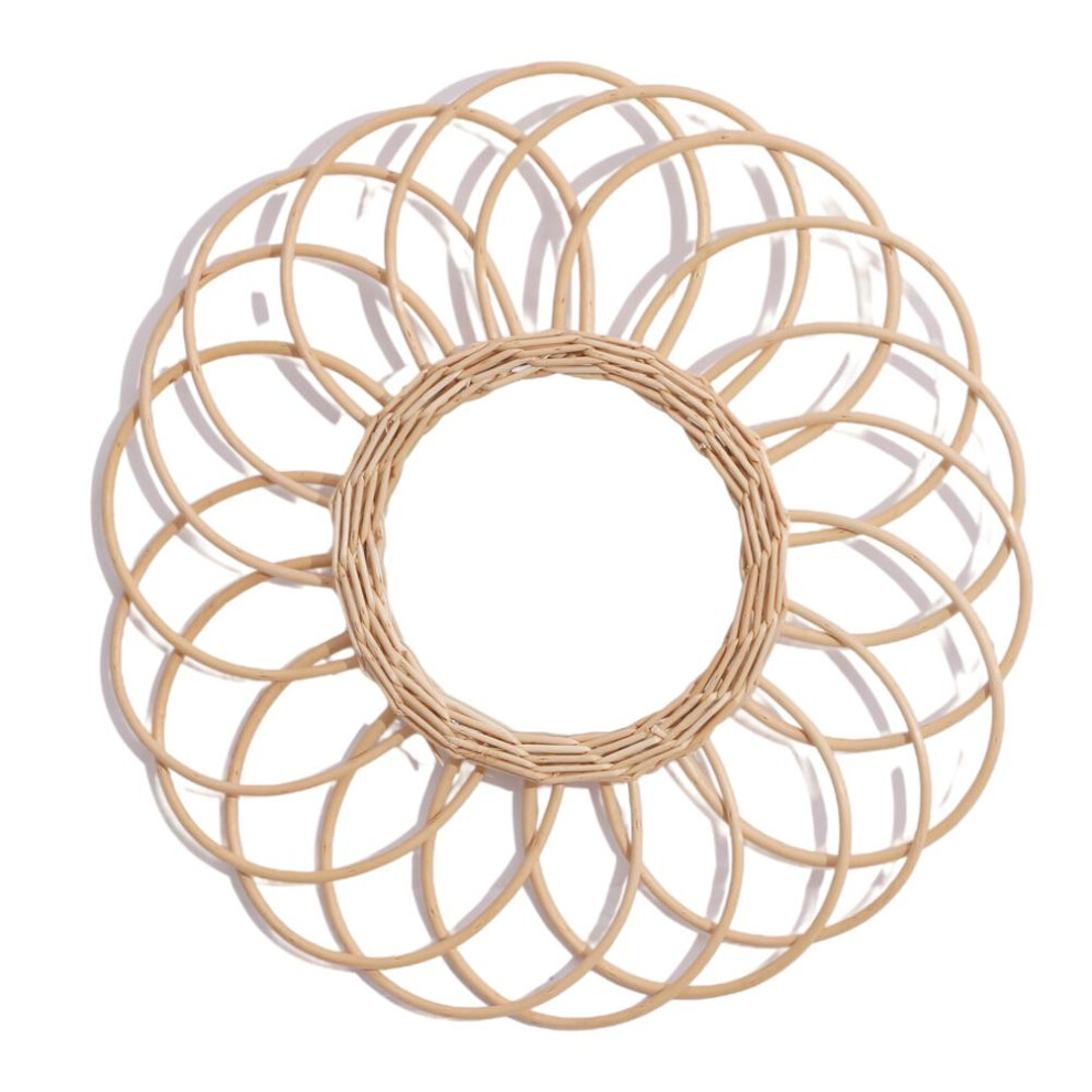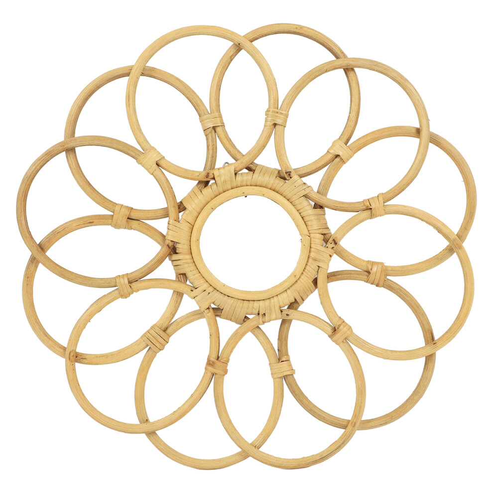 Natural Rattan Decorative Mirror Boho Sunflower Wicker Wall Hanging Art, Radiant Sun Mylar Balloons Style Clear Surface Oxidation Resistant Sustainabl