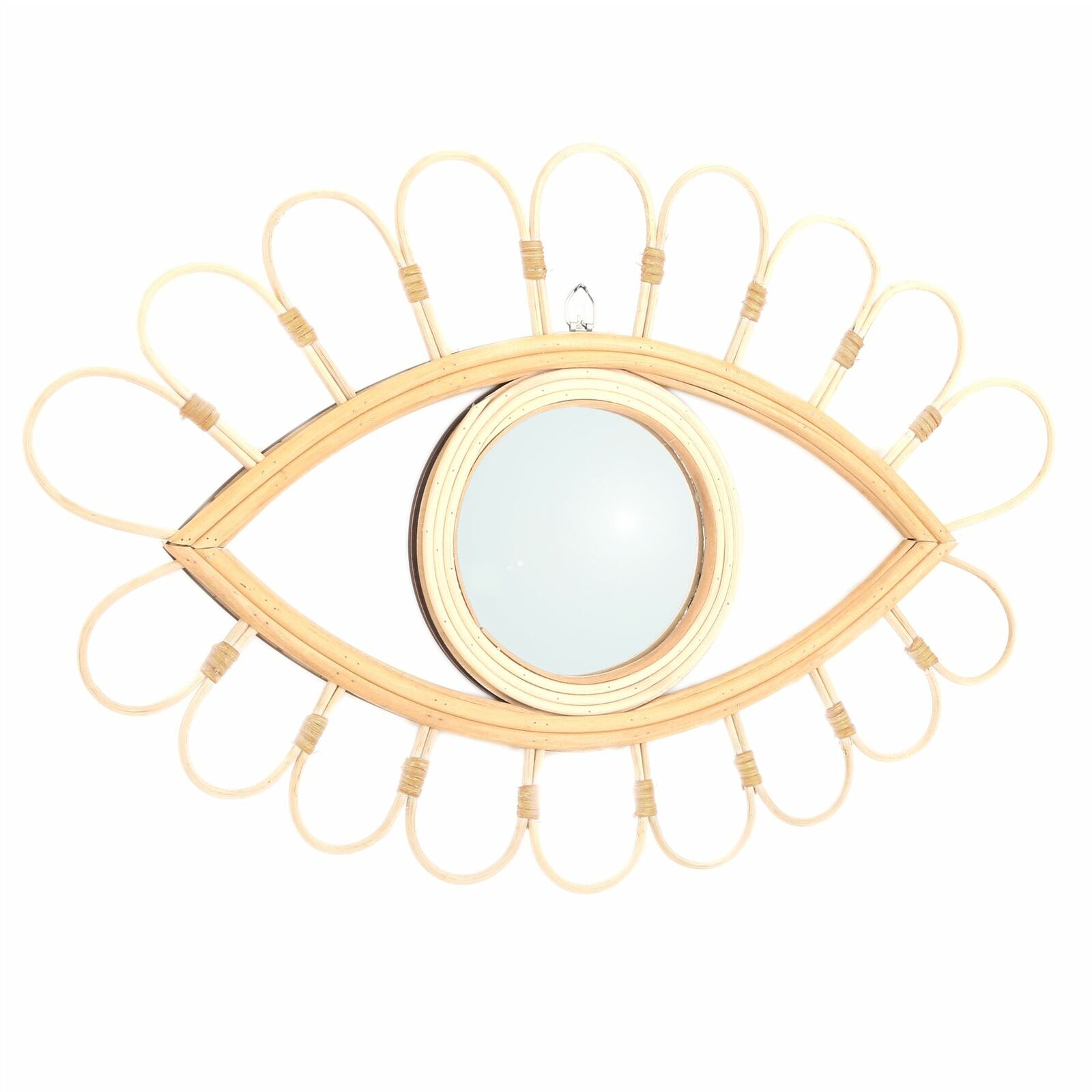 42cm Decorative Rattan Eye Shaped Wall Mirror | Wall Hanging Wicker Boho Mirror